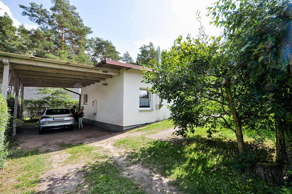 Haus: Idyllisch im Kiefernwald gelegene Feriensiedlung mit altem Baumbestand. Schönes Ferienhaus mit Kaminofen. Gemütliche Einrichtung. E-Heizung, zusätzlich Kaminofen. Warmwasser über Durchlauferhitzer. Überdachte Terrasse mit Sitzmöbeln, Gartenliegen, Grill. Schöner blickgeschützter Garten. 2 Pkw-Stellplätz am Haus, davon einer im Carport. Bootsliegeplatz 200 m (Anmietung nach Vereinbarung, nur Liegeplatz, ohne Boot). Angelkarten in Malchow erhältlich.