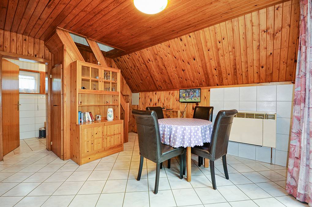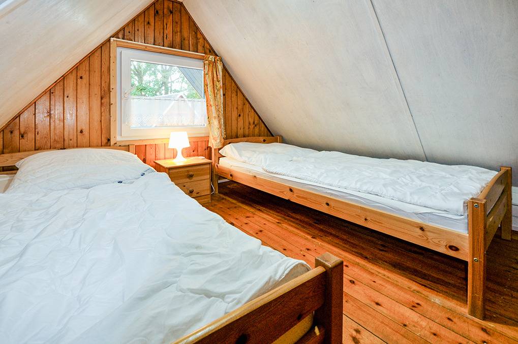 D 49.211 Finnhütte 1-4 Pers.: 3-Zimmerhaus mit ca. 40 qm Wohnfläche über 2 Etagen. Parterre: Wohnraum mit Couchgarnitur, Couchtisch, Sat-TV, Radio/CD, Esstisch, Küchenbereich (Backofen). Bad: bodengleiche Du, Wb, WC. Steile Stiege in die 1. Etage (Dachschrägen): 2-Bettzimmer mit eingeschränktem Seeblick. Weiteres 2-Bettzimmer.