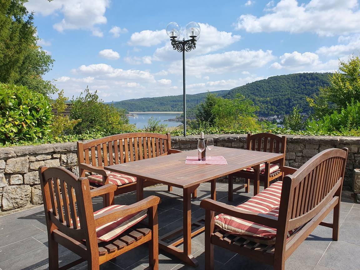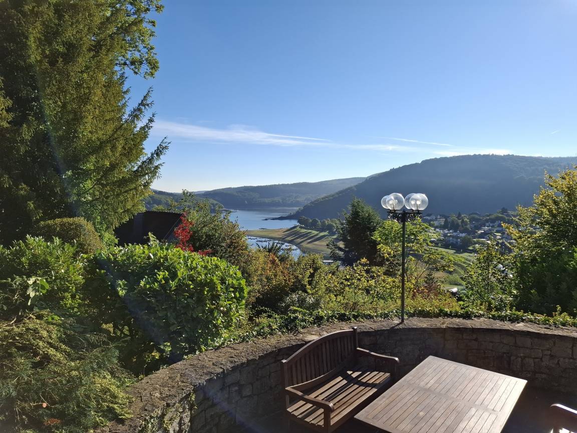Beide Ferienhäuser befinden sich auf einem großen, parkähnlichen Hanggrundstück mit altem Baumbestand. Der Blick von beiden Ferienhäusern und den großzügigen Terrassen erstreckt sich auf den Rursee und die Woffelsbacher Bucht. Die Ferienhäuser liegen jeweils für sich allein.