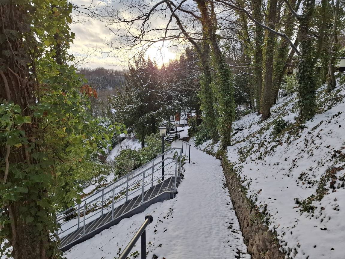 Die Anlagestelle der Rurseeschifffahrt in Woffelsbach ist zu Fuß in ca. 12 Minuten (über Treppen) zu erreichen.