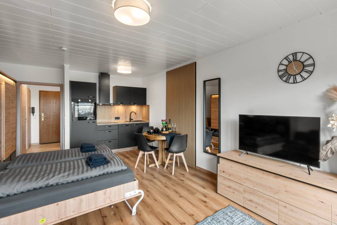 Die 2024 komplett modernisierte Ferienwohnung verteilt sich auf 40 m² und besteht aus einem großen Wohn- und