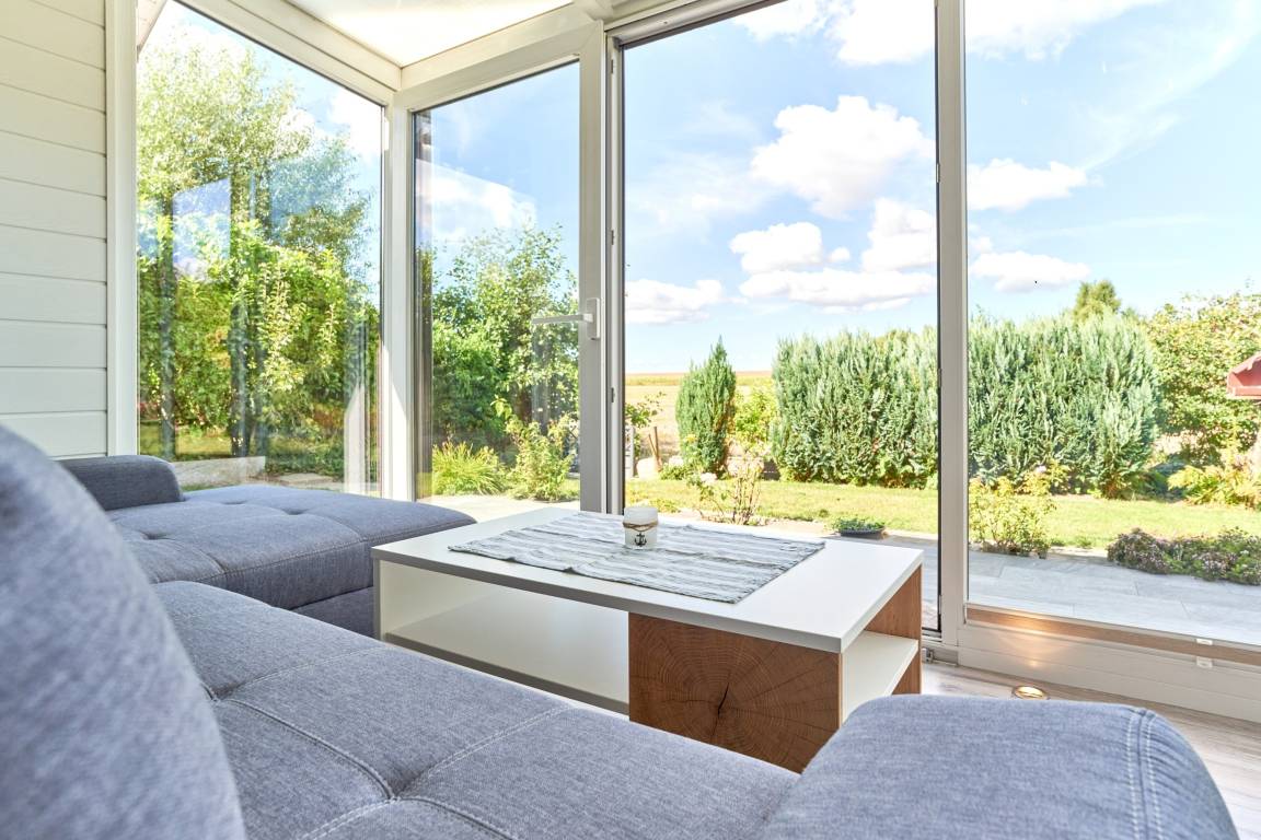 Streaming oder Arbeit im Urlaub problemlos möglich ist, und der praktische Windfang mit Sitzgelegenheit empfängt