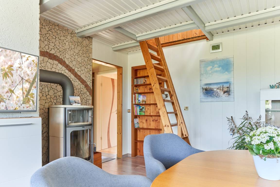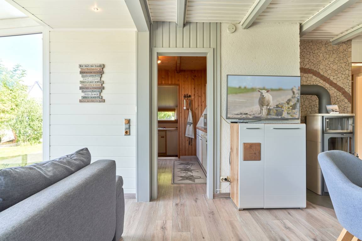 der frischen Nordseeluft abzuschalten. Für kuschelige Stunden sorgt der Kaminofen, der an kühleren Tagen wohlige Wärme verbreitet.