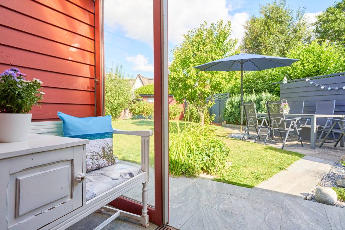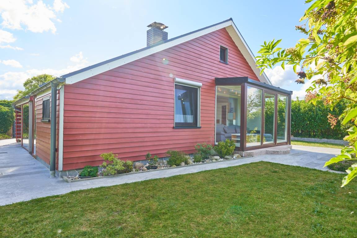 Das 70 m² große Ferienhaus steht auf einem 672 m² großen Grundstück, das mit Obstbäumen und Beerensträuchern
