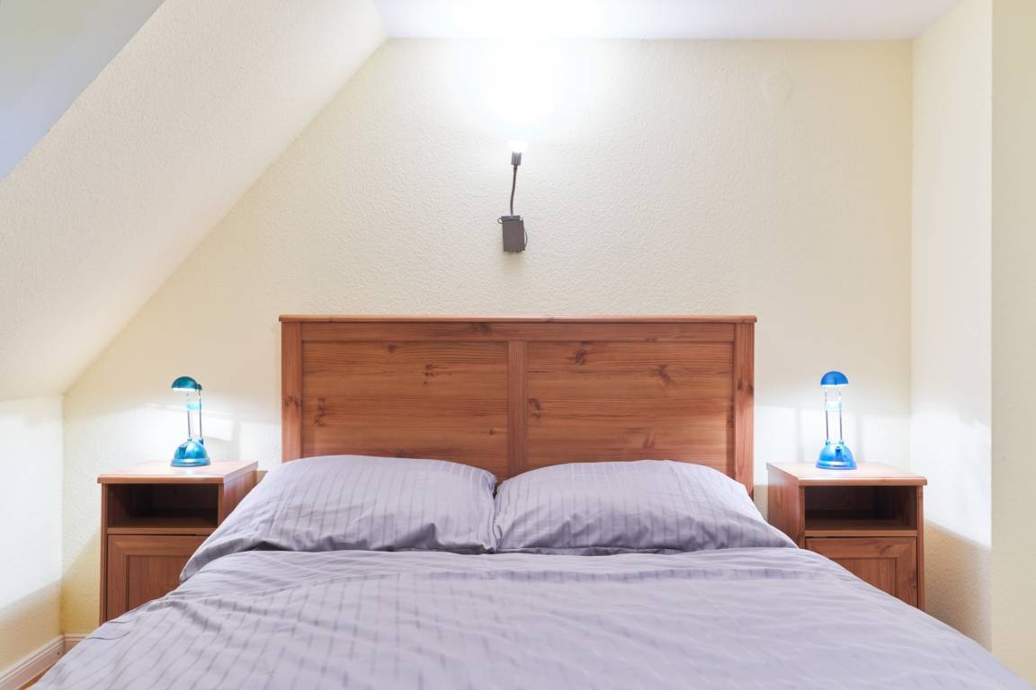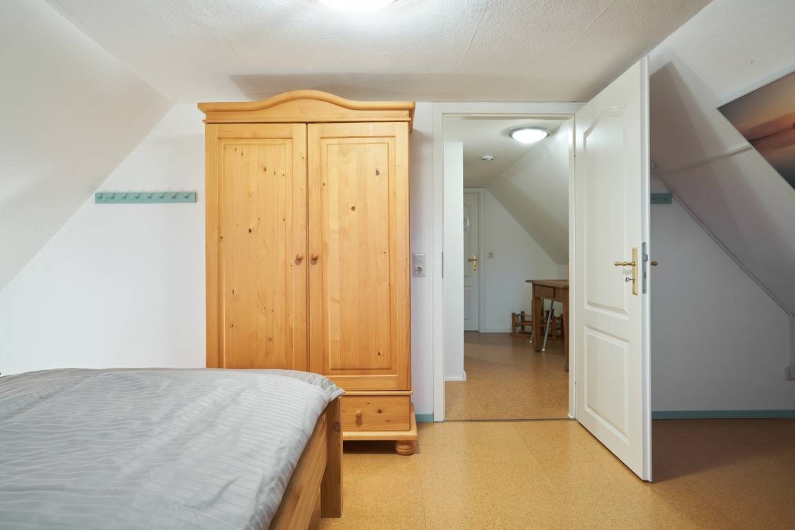 Die Schlafzimmer befinden sich im Obergeschoss und bieten ein besonders behagliches Wohngefühl unter dem traditionellen Reetdach.