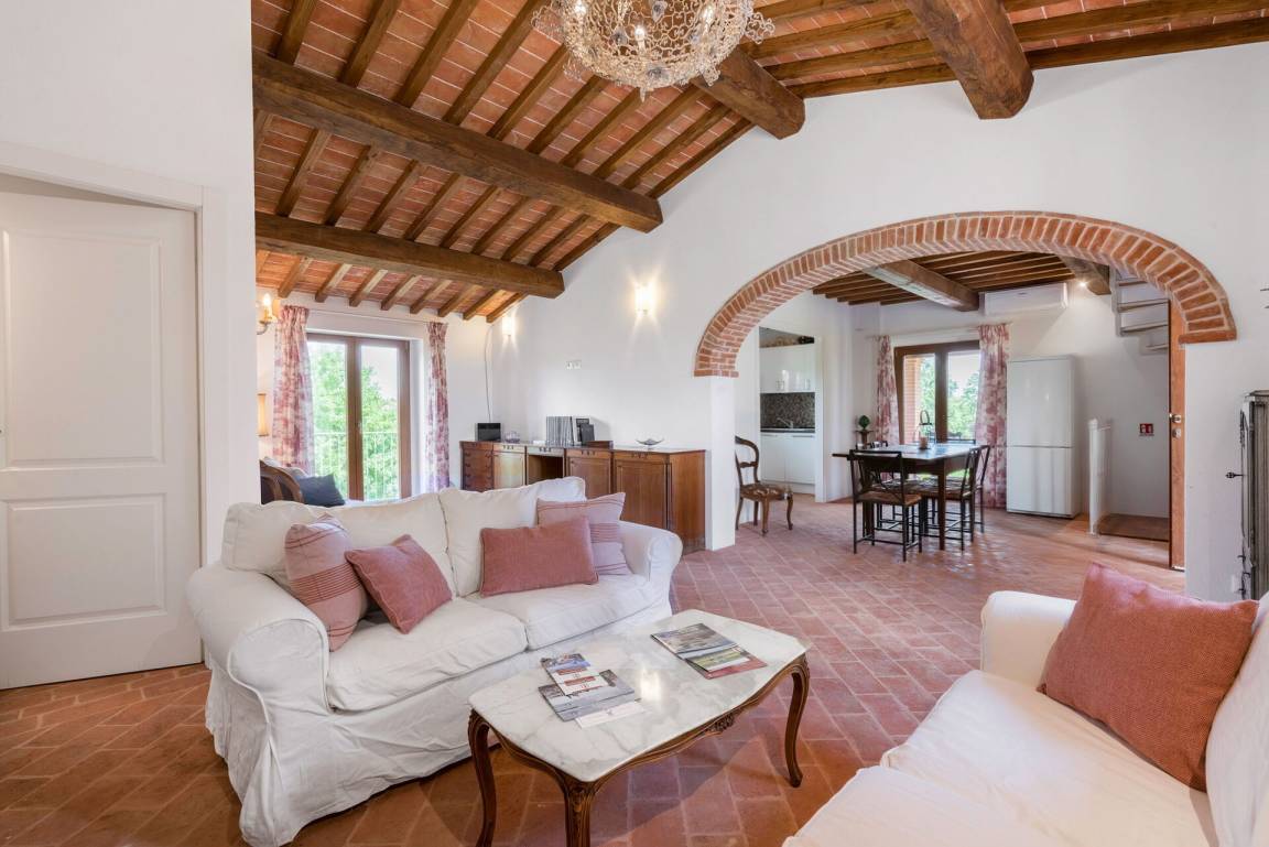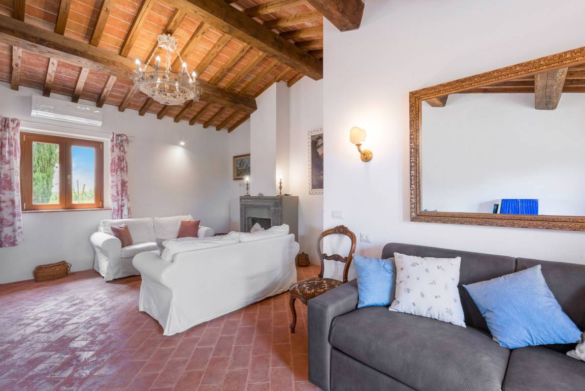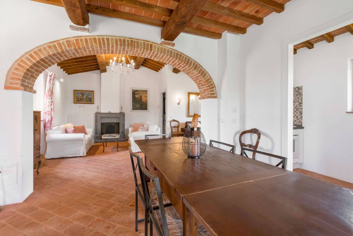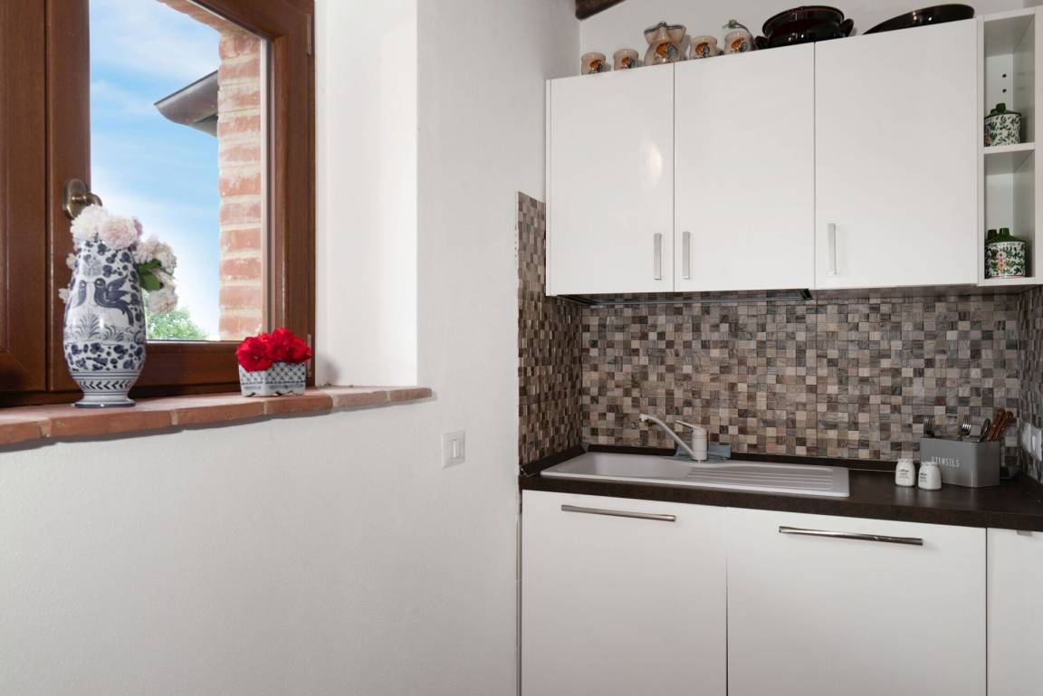 Wohnküche: gut ausgestattete Küche, Esstisch, Kühlschrank, Tiefkühler, Italienische Kaffeemaschine, Sofa, Kamin, Doppel-Schlafsofa, WiFi Internet, Klimaanlage, Ausgang auf den Garten.