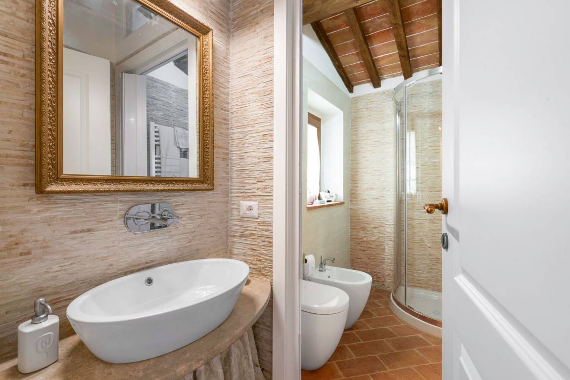 Badezimmer: Waschbecken, WC, Bidet, Dusche, Fön, WiFi Internet.