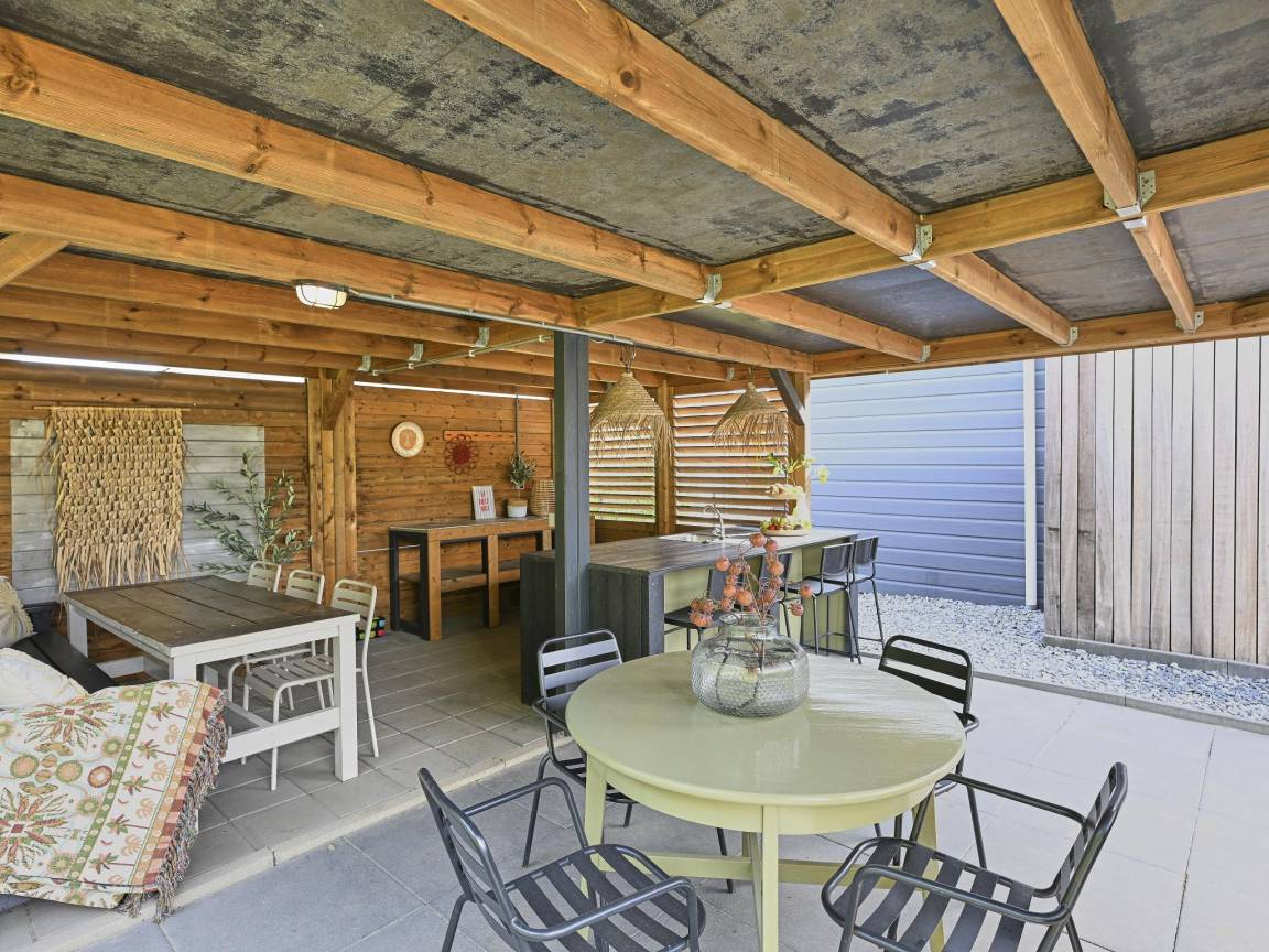 Hausbeschreibung : Dieses schöne Ferienhaus für 14 Personen befindet sich in einem ruhigen Ferienpark in Zeeland in der Nähe der Oosterscheldemündung. Der Strand von Sint-Annaland und sein gemütliches Zentrum sind leicht zu erreichen. Der Garten ist schön geschützt, bietet verschiedene Sitzgelegenheiten und einen Bouleplatz. Der Name ist Programm: Casa Familia ist ideal für Familien, aber auch behinderte Gäste sind willkommen.