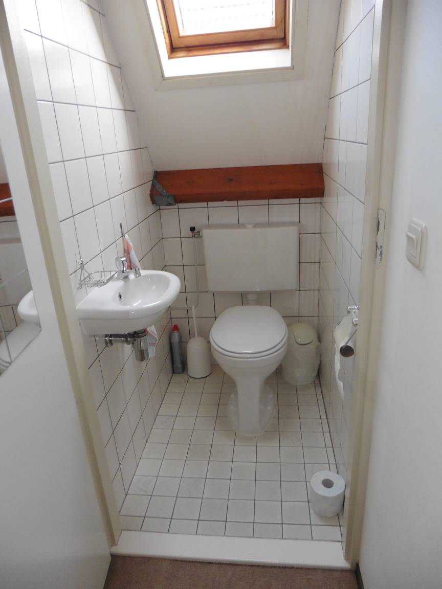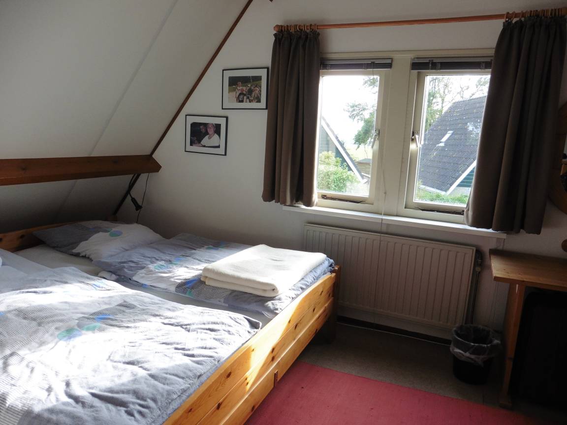 Im Obergeschoss liegen 3 Schlafräume mit insgesamt 5 Betten, wobei das Doppelbett 2 x 2 m misst (2 getrennte Matratzen) und eine zweite Toilette.
