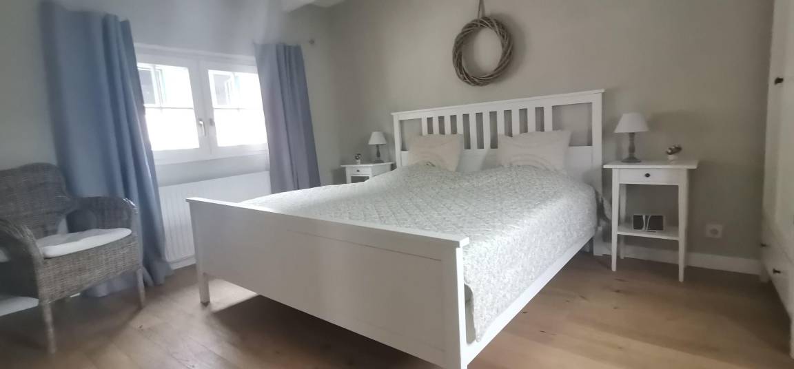 Das 1827 erbaute Fachwerkhaus wurde zwei Jahre lang liebevoll und aufwendig saniert. Dabei wurden fast ausschließlich biologische Baumaterialien wie Lehm und Stroh verwendet. Dies macht das Haus auch für Allergiker besonders interessant.