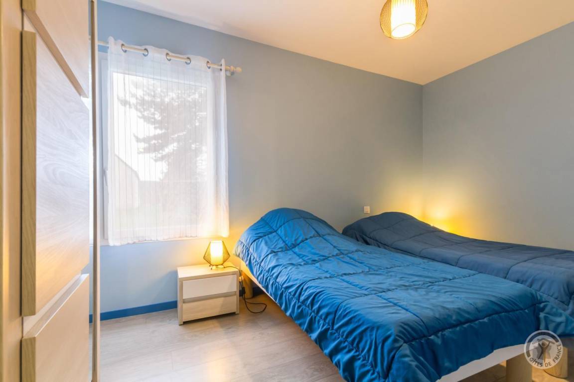 Diese Ferienwohnung befindet sich in einem Dorf mit 15 Ferienhäusern, die der Gemeinde gehören. Sie ist eine Doppelhaushälfte und grenzt an eine andere Ferienwohnung. Die Wohnung liegt komplett im Erdgeschoss und ist barrierefrei zugänglich. Das Wohnzimmer (TV, Internetanschluss) verfügt über ein Doppelschlafsofa. Die offene Küche mit Wohnbereich ist mit Backofen, Induktionskochfeld, Kühlschrank, Geschirrspüler und Mikrowelle ausgestattet. Das Schlafzimmer bietet zwei Einzelbetten (90 x 190 cm). Das Badezimmer verfügt über ein WC. Bettwäsche und Handtücher können gemietet werden. Die Reinigung wird stundenweise und gegen Aufpreis berechnet. Strom und Nebenkosten sind inklusive. Zur Ausstattung gehören eine private Terrasse, Gartenmöbel, ein gemeinschaftlicher Grillplatz, ein privater Carport und Parkplätze. Ein Wäscheservice ist auf Anfrage vor Ort verfügbar (18 € für eine Wäsche und einen Trockengang). Ein gemeinschaftlicher Spielplatz steht ebenfalls zur Verfügung.