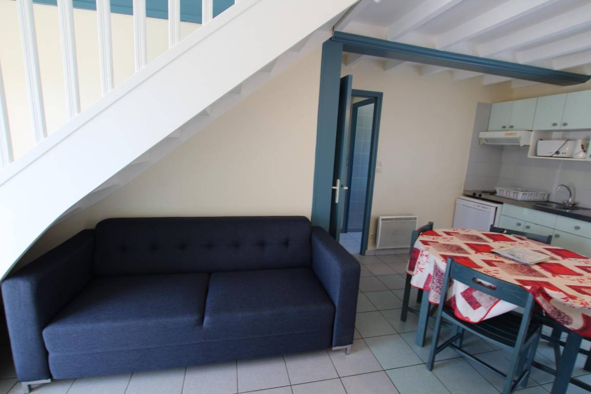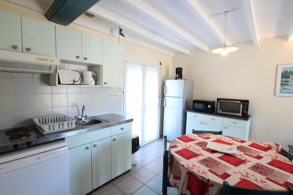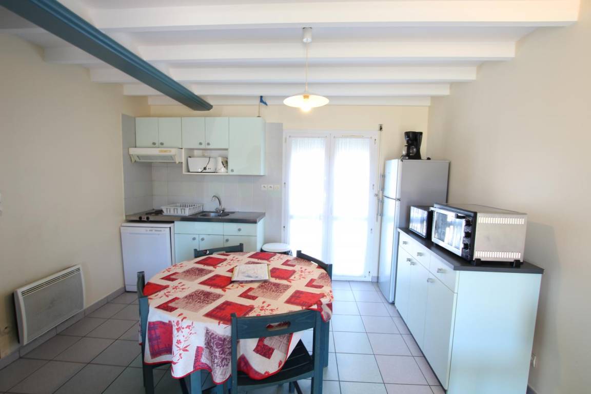 Doppelhaushälfte. Erdgeschoss: Wohnzimmer (festes Sofa, TV) mit Kochnische (Geschirrspüler), Schlafzimmer 1 (1 Doppelbett), Duschbad, WC. Obergeschoss: Mezzanine (1 Einzelbett), Schlafzimmer 2 (2 Einzelbetten). Bettwäsche kann gemietet werden. Handtücher können gemietet werden (Set mit 1 Handtuch und einem Waschlappen). Reinigungsservice gegen Aufpreis pro Stunde. WLAN-Internetzugang. Elektroheizung inklusive. Babyausstattung auf Anfrage. Nicht eingezäuntes Grundstück. 2 gemeinschaftliche Grillplätze und ein individueller Grill auf Anfrage und je nach Verfügbarkeit. Gartenmöbel. Parkplatz. Vor Ort: Bouleplatz, Tennisplatz und Multisportplatz, Kinderspiele. Wäscheservice auf Anfrage vor Ort (18 € Paket 1 Waschen + 1 Trocknen).