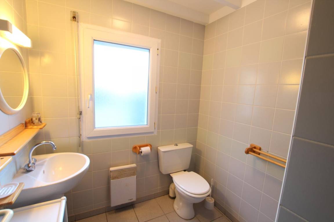Doppelhaushälfte. Erdgeschoss: Wohnzimmer (TV) mit Kochnische (Geschirrspüler). 1 Schlafzimmer mit Doppelbett (140 cm). 1 Duschbad mit WC. Obergeschoss: Galerie (Einzelbett) und Schlafzimmer 2 (zwei Einzelbetten). Bettwäsche und Handtücher können gemietet werden. Reinigungsservice gegen Aufpreis (stundenweise Abrechnung). WLAN. Elektrische Heizung inklusive. Babyausstattung auf Anfrage. Kleiner, privater Garten. Zwei Grillplätze zur Mitbenutzung, weitere Grillplätze auf Anfrage und je nach Verfügbarkeit. Gartenmöbel. Parkplatz. Auf dem Gelände: Bouleplatz, Tennisplatz, Mehrzwecksportplatz, Kinderspielplatz. Wäscheservice auf Anfrage (Pauschalpreis 18 € für 1 Waschgang und 1 Trocknung).