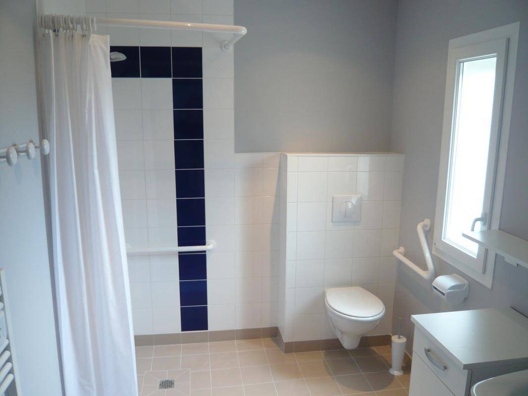 Doppelhaushälfte (barrierefrei). Wohnzimmer (Schlafsofa, TV) mit Kochnische. 1 Schlafzimmer (2 Einzelbetten). Duschraum mit WC. Bettwäsche und Handtücher können gemietet werden. Reinigungsservice stundenweise gegen Aufpreis. WLAN-Internetzugang. Elektroheizung inklusive. Private Terrasse. Gartenmöbel. Grill. Privater Unterstand. Parkplatz. Wäscheservice auf Anfrage vor Ort (18 € Pauschale für 1 Waschen und 1 Trocknen).