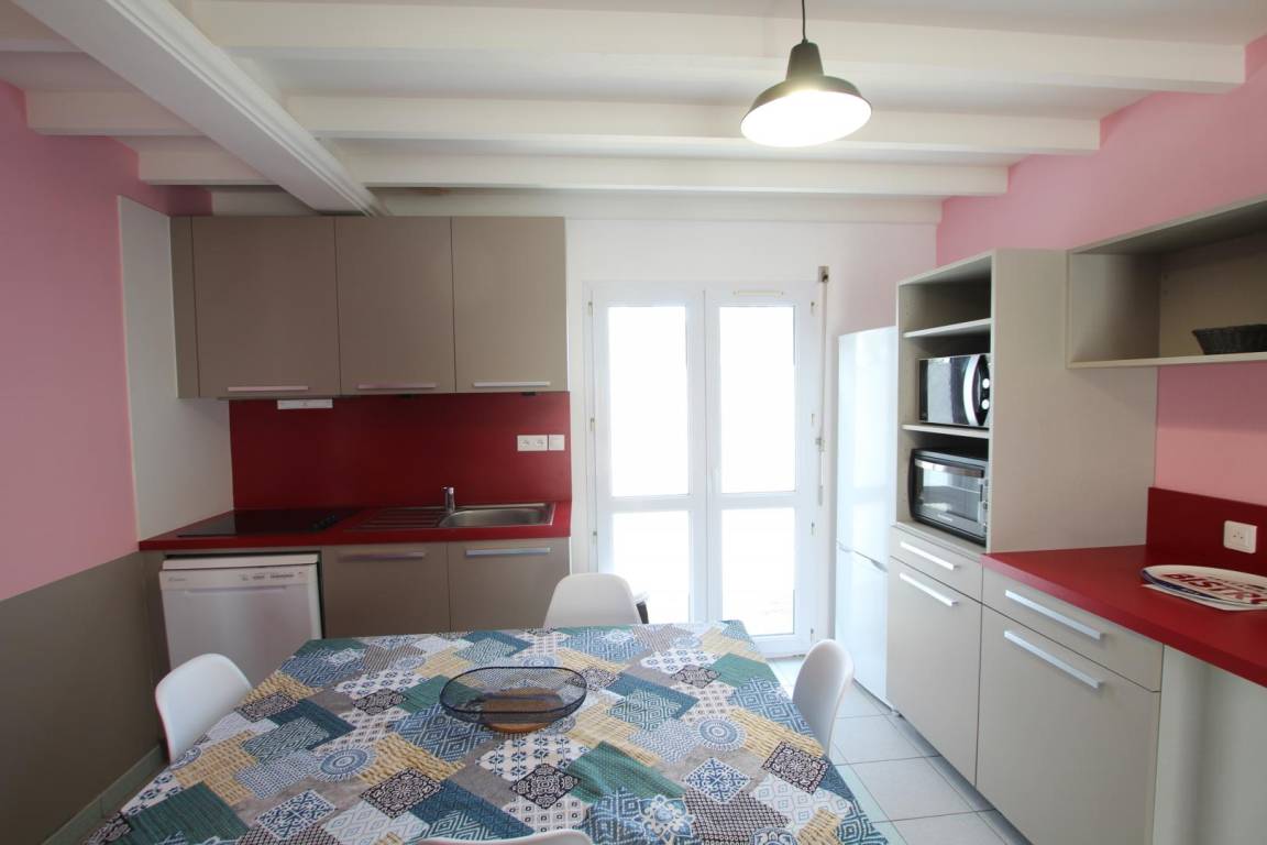 Doppelhaushälfte. Erdgeschoss: Wohnzimmer (Fernseher) mit Kochnische (Geschirrspüler). Duschraum mit Toilette. Schlafzimmer 1 (1 Doppelbett). Obergeschoss: Mezzanin (1 Einzelbett), Schlafzimmer 2 (2 Einzelbetten). Bettwäsche mietbar. Handtücher mietbar. WLAN-Internetzugang. Reinigungsservice gegen Aufpreis, Abrechnung pro Stunde. Elektroheizung inklusive. Babyausstattung auf Anfrage. Kleiner privater Außenbereich. 2 gemeinschaftliche Grills verfügbar und individueller Grill auf Anfrage und je nach Verfügbarkeit. Gartenmöbel. Parkplatz. Wäscheservice auf Anfrage vor Ort (18 € pauschal für 1 Waschen und 1 Trocknen).