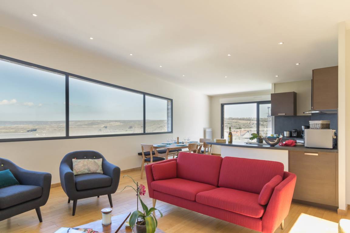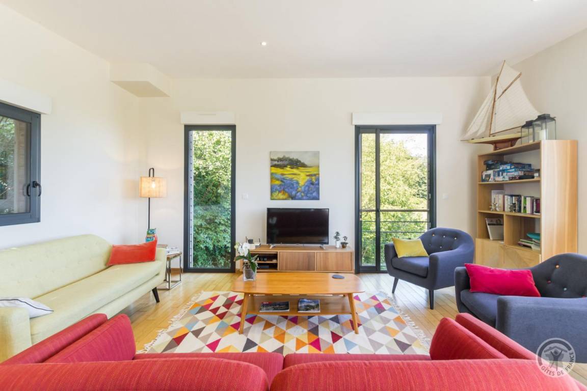 „La maison est moderne, grande et claire, et donc extrêmement confortable. Nous y avons passé une semaine de Toussaint pas aidés par le temps, mais c'était presque tant mieux: Contempler la mer et le ciel changeant bien au chaud depuis le salon est un enchantement. Nous avons hâte de revenir!“