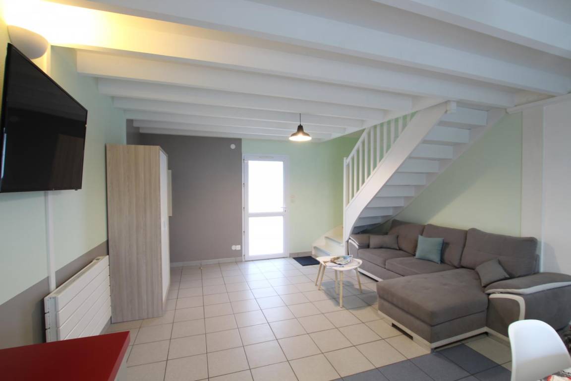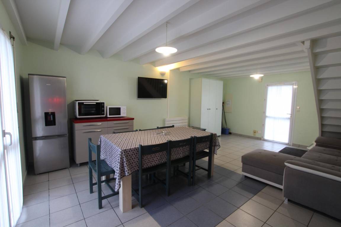 Doppelhaushälfte. Erdgeschoss: Wohnzimmer (Schlafsofa) mit Kochnische (Geschirrspüler). Fernseher. Schlafzimmer 1 (1 Doppelbett). Duschbad mit WC. Obergeschoss: Schlafzimmer 2 (1 Doppelbett und 1 Einzelbett). Schlafzimmer 3 (1 Einzelbett). Duschbad mit WC. Bettwäsche und Handtücher (Set bestehend aus Handtuch und Waschlappen) können gemietet werden. Reinigungsservice gegen Aufpreis (stundenweise Abrechnung). WLAN. Elektrische Heizung inklusive. Babyausstattung auf Anfrage. Kleiner privater Außenbereich. Zwei Gemeinschaftsgrills vorhanden, weitere Grills auf Anfrage. Gartenmöbel. Parkplatz. Wäscheservice auf Anfrage vor Ort (Pauschalpreis 18 € für 1 Waschgang und 1 Trocknung).