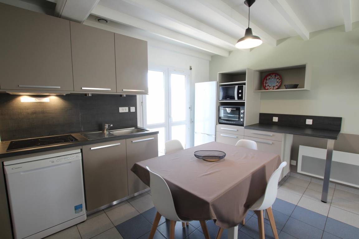 Haus, das an 2 weitere Ferienwohnungen angrenzt. Wohnzimmer (TV) mit Kochnische. Geschirrspüler. Schlafzimmer 1 (1 Doppelbett). Duschraum mit WC. Im 1. Stock: Schlafzimmer 2 (2 Einzelbetten), Mezzanin mit 1 Einzelbett. Elektroheizung inklusive. Bettwäsche und Haushaltswäsche können gemietet werden. Reinigungsservice gegen Aufpreis und Stundenzahlung. WLAN-Internetzugang. Babyausstattung auf Anfrage. Privates, nicht eingezäuntes Grundstück. 2 gemeinschaftliche Grillplätze und ein individueller Grill auf Anfrage und nach Verfügbarkeit. Gartenmöbel. Gemeinsamer Grillplatz. Parkplatz. Gemeinsamer Spielplatz. Wäscheservice auf Anfrage vor Ort (18 € pauschal für 1 Waschgang und 1 Trocknen).