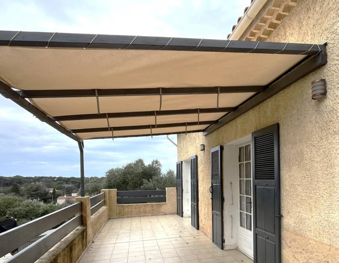 Im ersten Stock eines Hauses auf dem Land 1,5 km vom Meer und Stränden entfernt ruhig auf 1500 m ² großen privaten Grundstück, umgeben von Weinbergen, Olivenhainen und Pinienwäldern. Seaview (Sanary - Bandol - La Ciotat). Alle nautischen Aktivitäten in 1,5 km Wanderwege Kap Sicié und die Inseln das ganze Jahr über. Sowie privater Eingang, Carport. Grosse Terrasse 37 m ², mit Markise, Gartenmöbel, Liegestühle. Im Erdgeschoss eine andere Hütte für 2 Personen.
