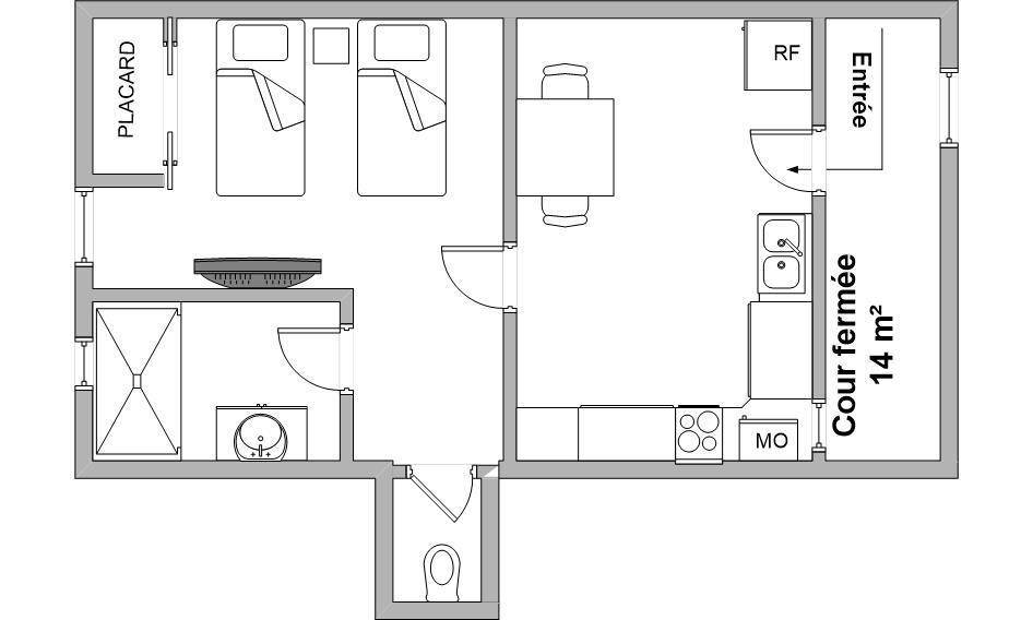 30 m² Gîte ∙ 1 Schlafzimmer ∙ 2 Gäste