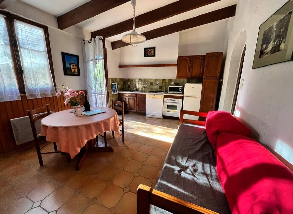 Erdgeschoss: Küche-Wohnzimmer mit 1 ausziehbarem Bett 2 mal 1 Sitz, 1 Schlafzimmer mit 1 Bett 160 X 190 (2x0.80 einstellbar), Badezimmer mit wc. Elektrische Heizung. Kostenloses Wi-Fi.