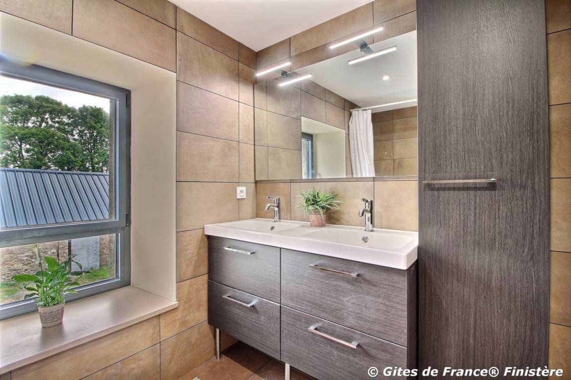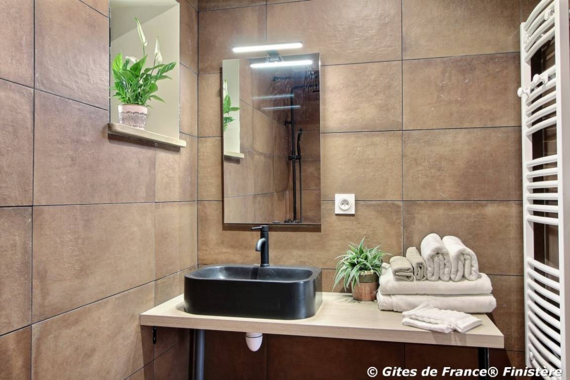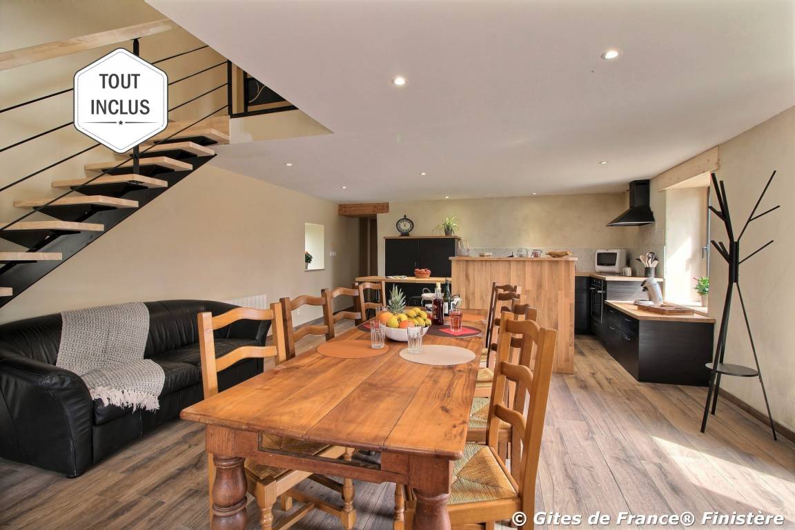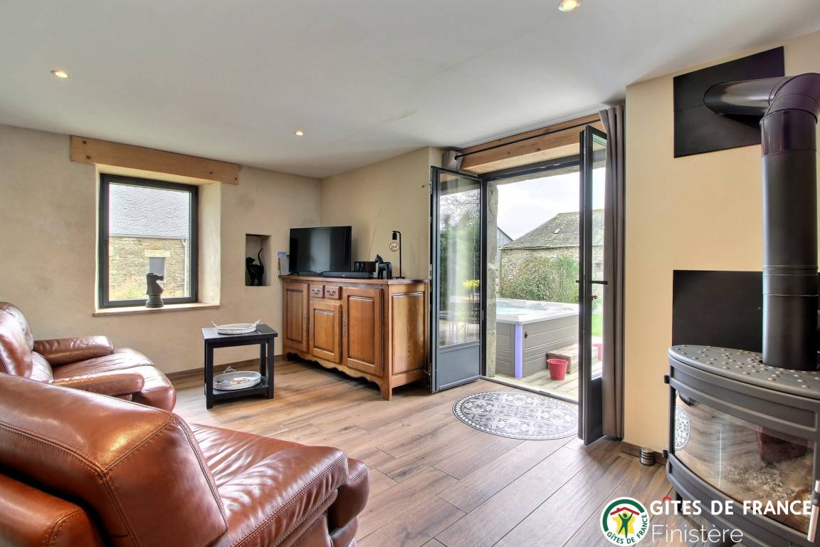„Vous voulez être logé loin de la cohue estivale tout en ayant un accès assez rapide (40 min) à la mer, vous relaxer dans un endroit paisible et accueillant, profiter d'un spa de haute qualité en écoutant les oiseaux chanter? ? Ce gite est le lieu idéal pour tout cela. Par ailleurs, situé au cœur des Monts d'Arrée, vous pourrez facilement alterner entre plages (Finistère nord, cap de Crozon) et randonnées. Logement très propre, très bien équipé, très beau. Propriétaire très accueillante et disponible.“