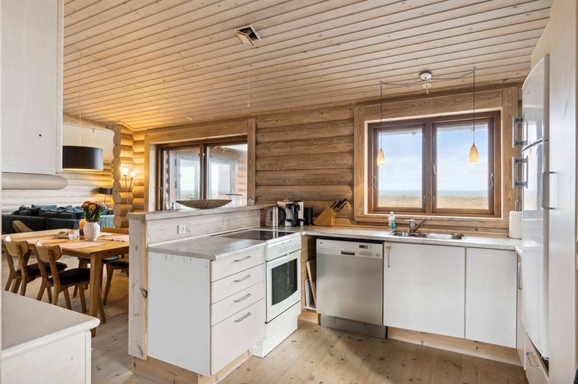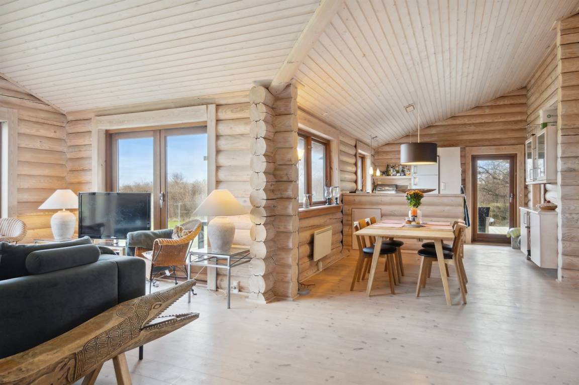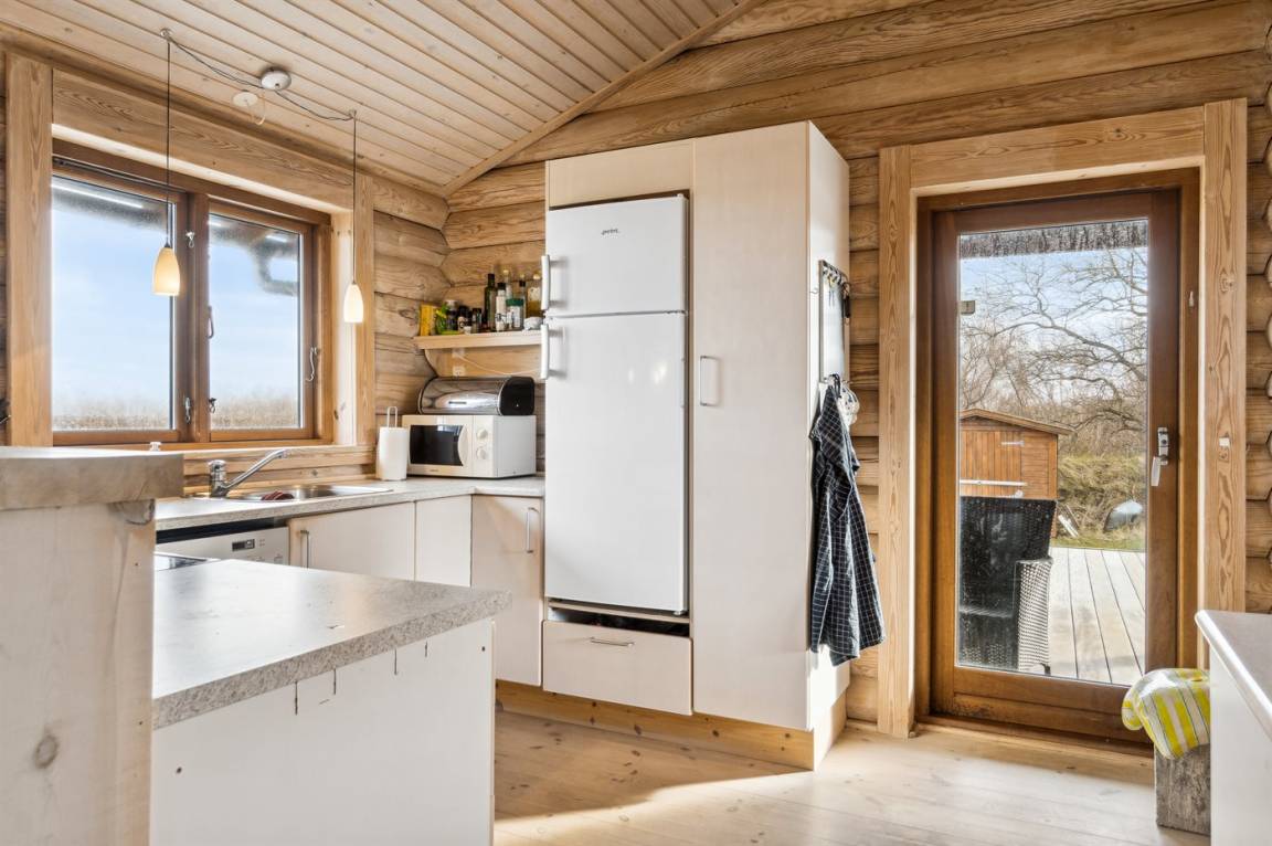 Dieses gemütliche Blockhaus liegt in erster Reihe auf der Nordseite von Sjællands Odde mit einem Panoramablick auf das Meer und in der Nähe der Spitze von Sjællands Odde und Gniben. Das große Grundstück reicht bis zum Strand. Die fantastische Aussicht und das schöne Licht, das Sjællands Odde auszeichnet, können vom gemütlichen Küchen- und Wohnbereich mit Kamin genossen werden. Vom Wohnzimmer aus gelangt man auf die große Terrasse, von der ein Teil überdacht ist. Überall im Haus gibt es hohe Decken, die zu einem guten Raumgefühl beitragen. Es gibt 3 Schlafzimmer mit jeweils 2 Schlafplätzen. Es gibt 1 Badezimmer mit Dusche und eine Gästetoilette mit Waschmaschine. Das Haus wird energieeffizient mit einer Luft-Luft-Wärmepumpe beheizt.