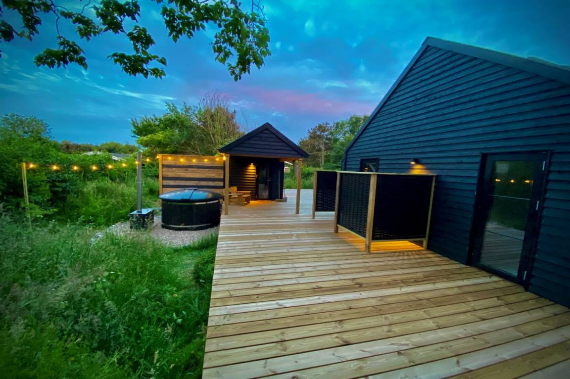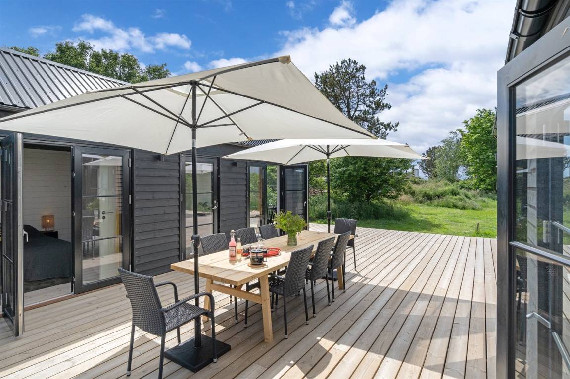 Modernes, neu erbautes Luxusferienhaus in 2. Reihe zum Strand, das über ein Outdoor-Badefass und eine Outdoor-Sauna verfügt.