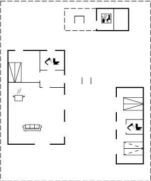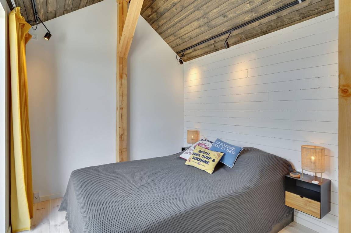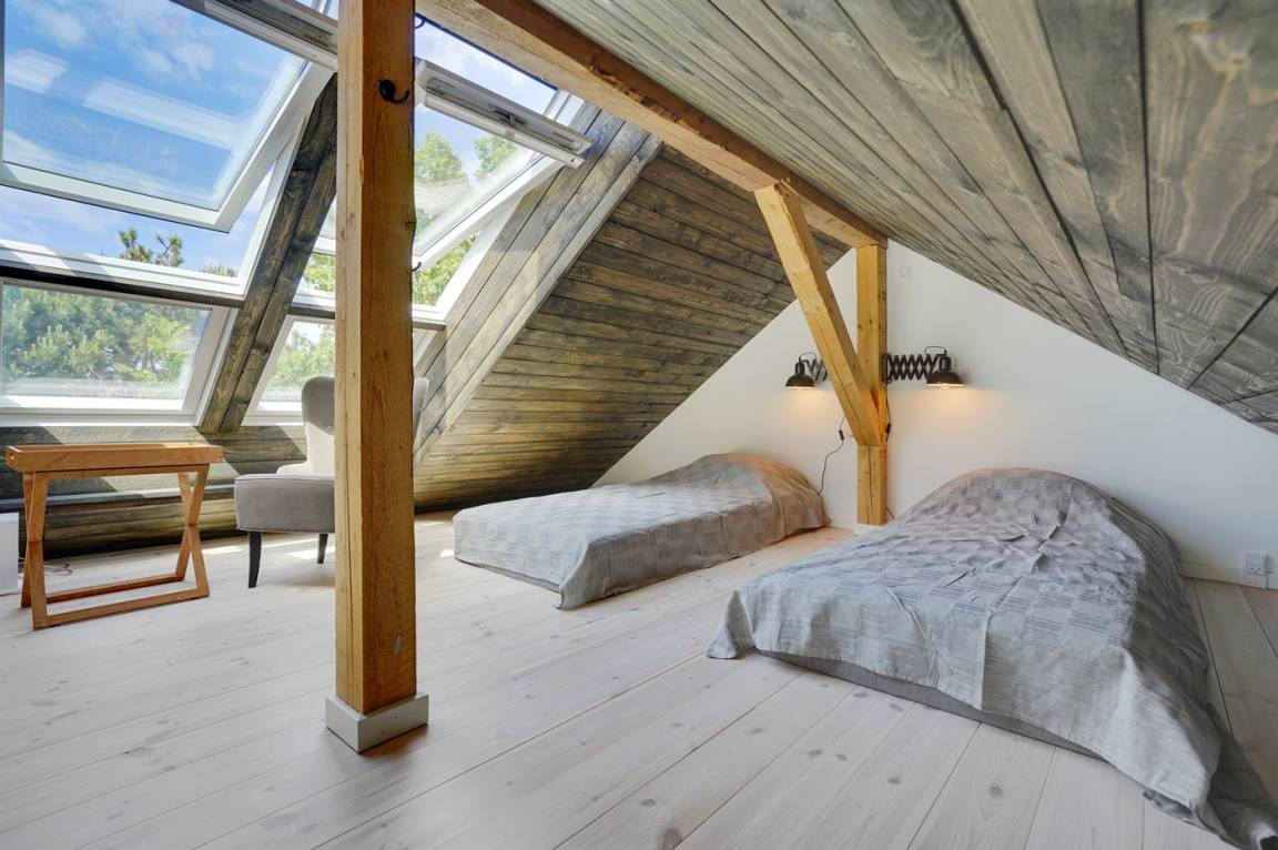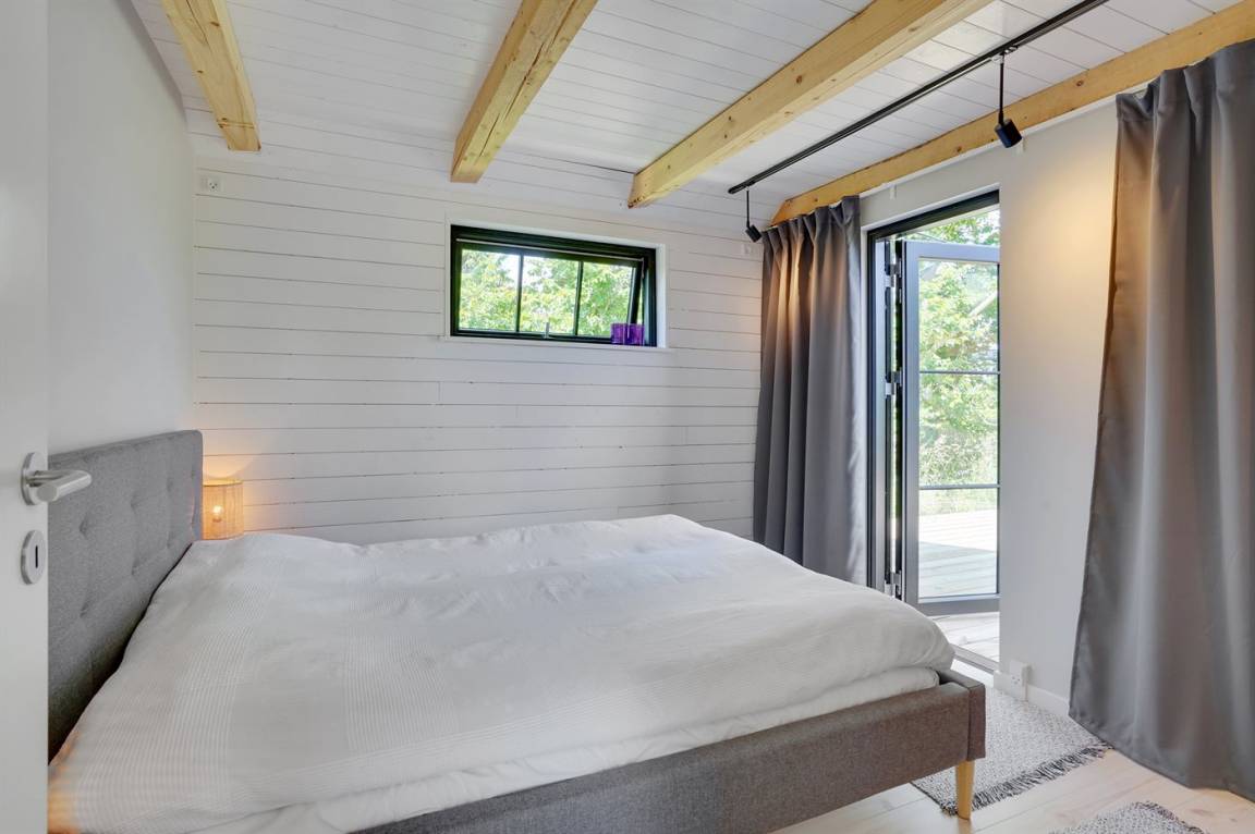 Im Haus gibt es ein Schlafzimmer mit einem Doppelbett und zwei Schlafplätze im offenen Obergeschoss. Im Nebengebäude mit eigenem Badezimmer befinden sich 2 Schlafzimmer mit einem Doppelbett bzw. einem Doppelschlafsofa. Die Doppelbetten setzen sich aus zwei Einzelbetten mit verschiedener Matratzenhärte zusammen.