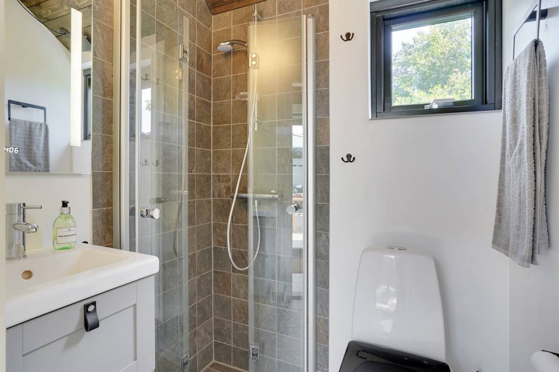 Auf den großen Terrassenbereichen, von denen das Haus umgeben ist, können Sie den Sommer im Freien genießen. Es ist ein Badefass für 6 Personen vorhanden, das mit Holz beheizt wird, und eine elektrisch beheizte Außensauna, die ebenfalls für 6 Personen geeignet ist. Zudem gibt es zwei Außenduschen.