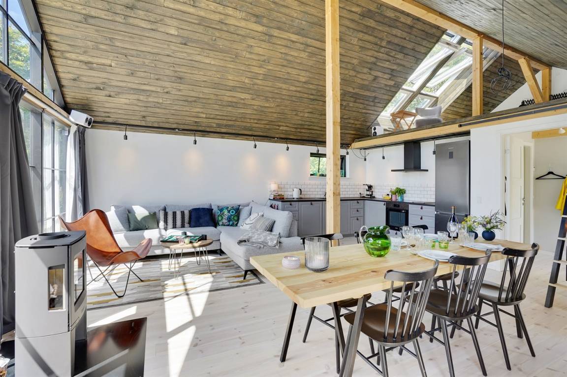 Dieses 2022 erbaute Ferienhaus bietet optimale Voraussetzungen für einen gemütlichen und entspannenden Urlaub mit der Familie oder guten Freunden. Das Haus ist modern eingerichtet und gut ausgestattet, geräumig und hell – typisch skandinavisch. Das Herz des Hauses ist der offene Wohnbereich, der Küche, Essbereich und Wohnzimmer umfasst.