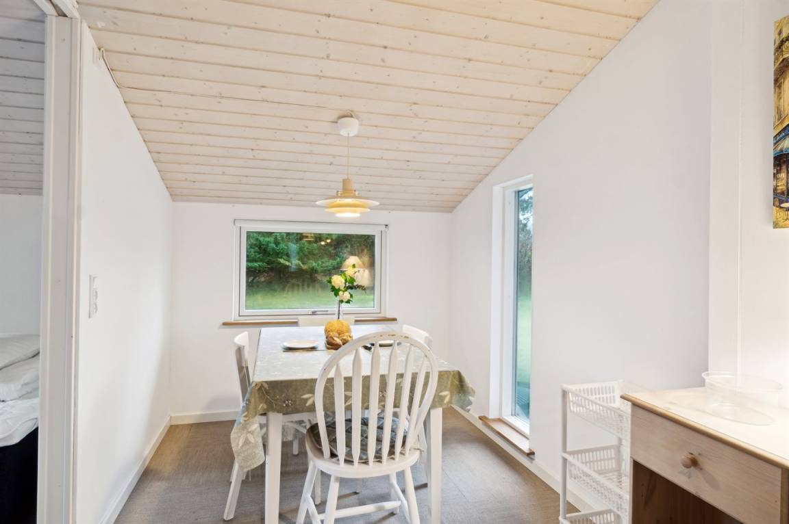 Dieses gemütliche Ferienhaus liegt auf Sjællands Odde, nur 500 Meter vom Strand am Kattegat entfernt. Das Haus verfügt über eine Wohnküche in offener Verbindung mit dem Wohnzimmer. Von hier aus hast du Zugang zum Garten und zur Terrasse, von der ein Teil überdacht ist, sodass du leicht Schatten vor der Sonne finden kannst. Es gibt 3 Schlafzimmer, jedes mit 2 Schlafplätzen, sowie ein Badezimmer mit Duschniche.