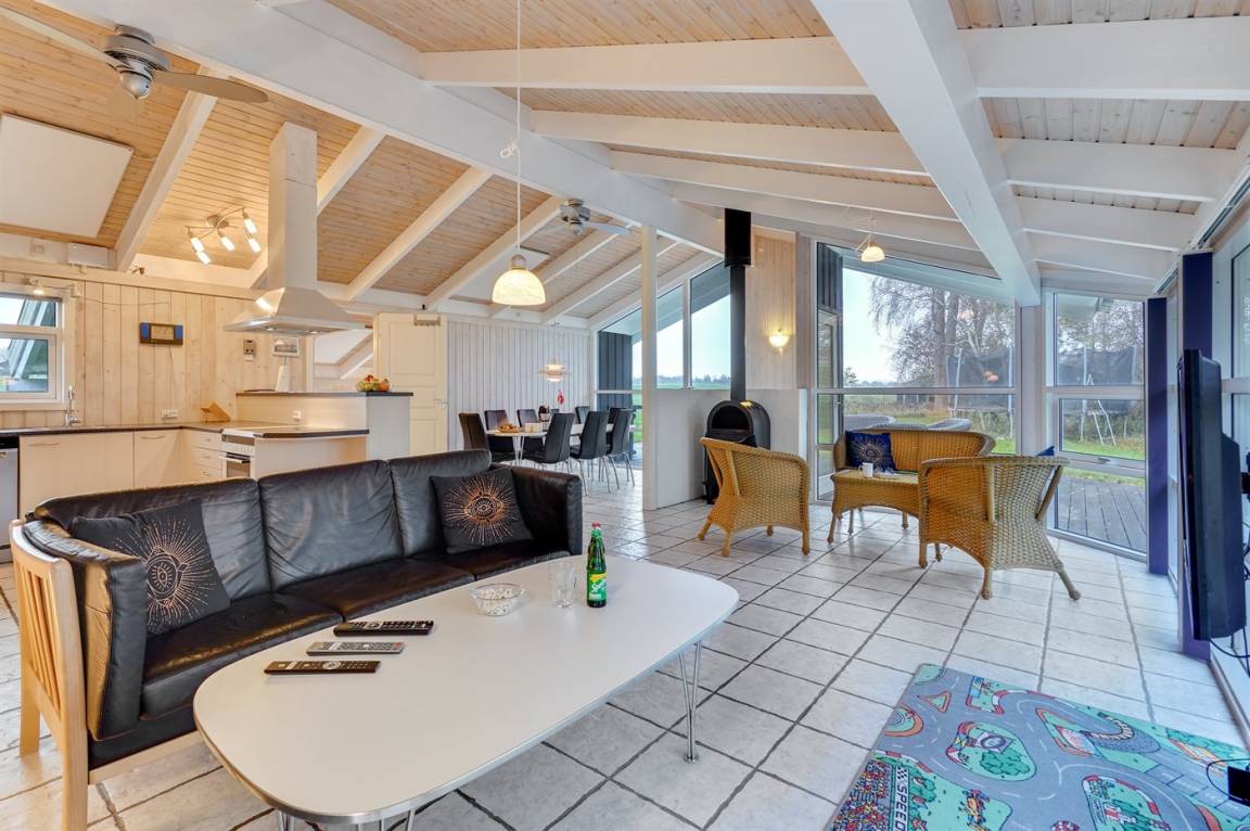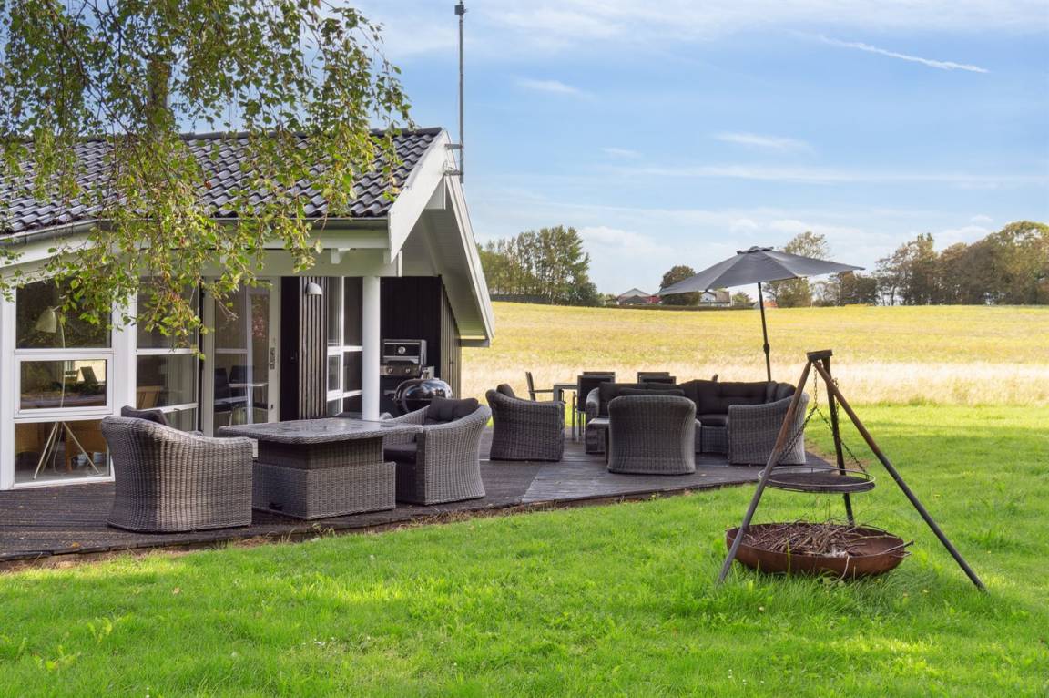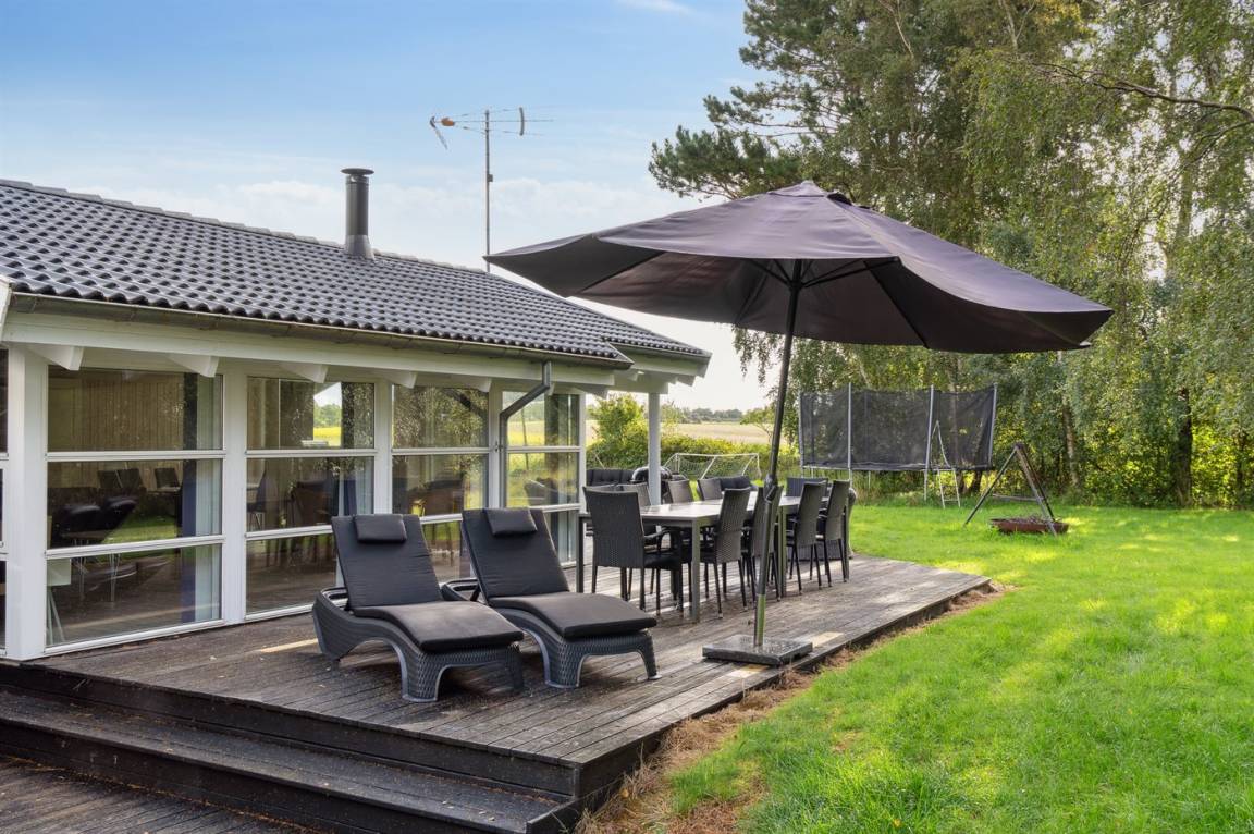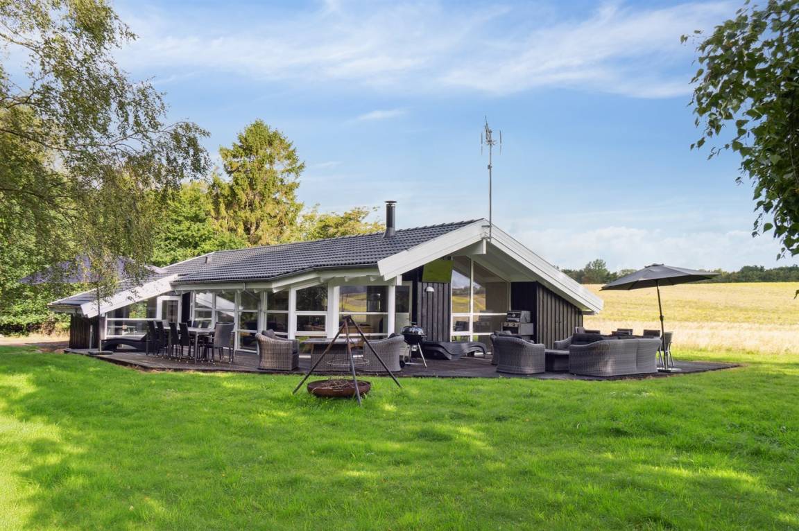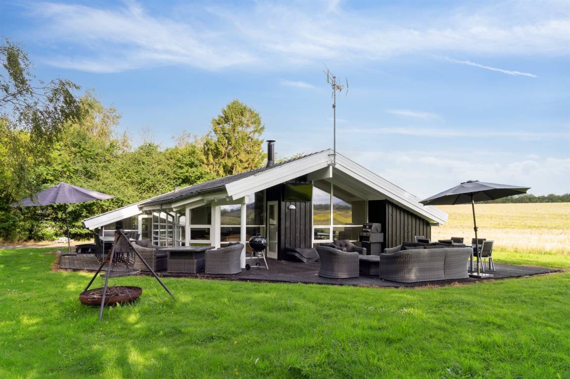 Dieses besonders schöne Ferienhaus liegt in einem ruhigen und naturschönen Gebiet – nicht weit von einem Strand mit einem neuen Badesteg entfernt. Vom Haus und von der Terrasse haben Sie eine herrliche Aussicht auf die offenen Felder und ab und zu ist es möglich Damwild und Hasen zu sehen. Das Gebiet ist bei Sportanglern sehr beliebt. Übrigens: Eine Leiter führt in das offene Obergeschoss hinauf, das mit 2 Matratzen eingerichtet ist.