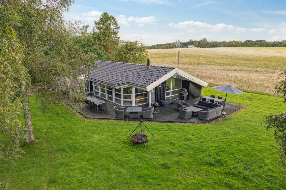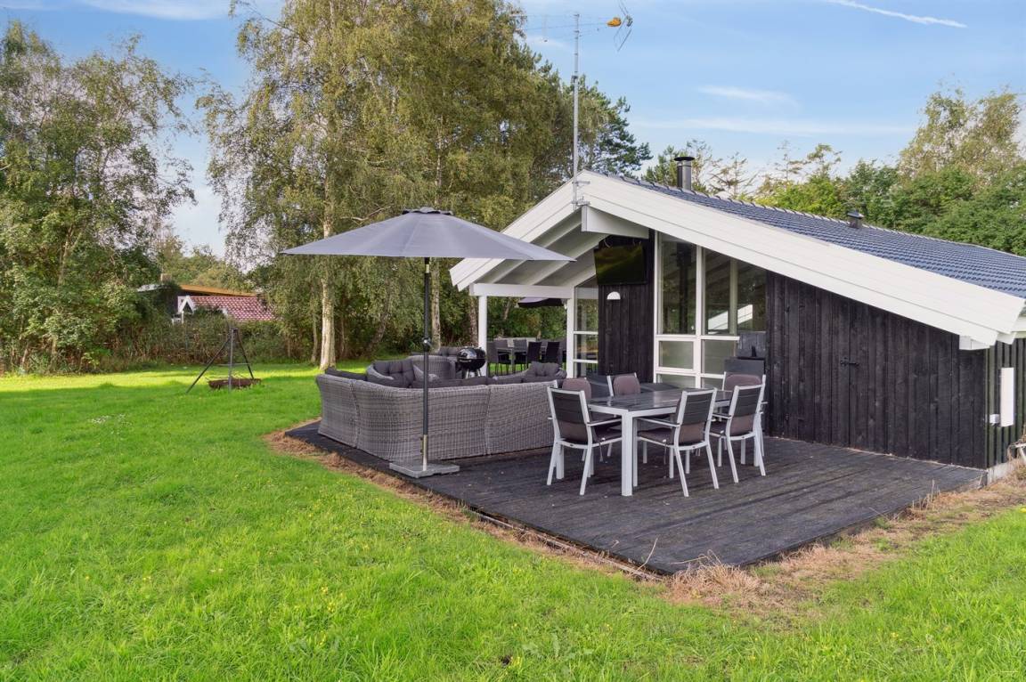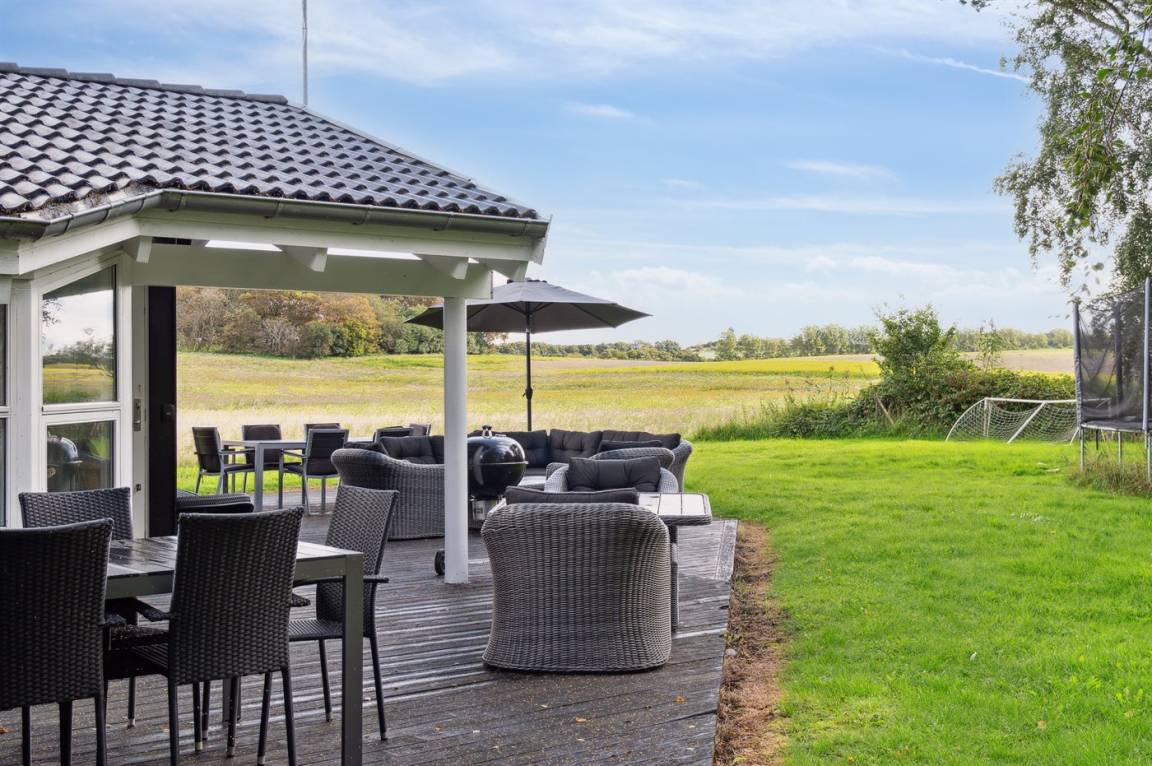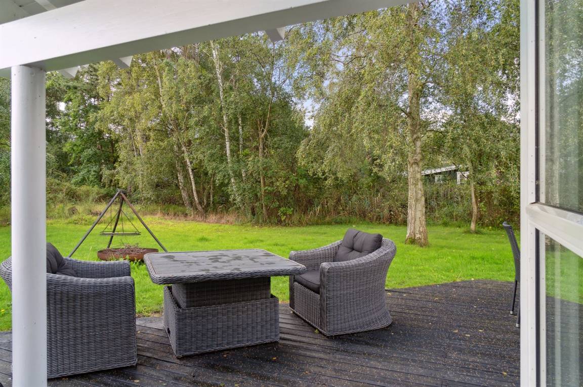 Dieses besonders schöne Ferienhaus liegt in einem ruhigen und naturschönen Gebiet – nicht weit von einem Strand mit einem neuen Badesteg entfernt. Vom Haus und von der Terrasse haben Sie eine herrliche Aussicht auf die offenen Felder und ab und zu ist es möglich Damwild und Hasen zu sehen. Das Gebiet ist bei Sportanglern sehr beliebt. Übrigens: Eine Leiter führt in das offene Obergeschoss hinauf, das mit 2 Matratzen eingerichtet ist.