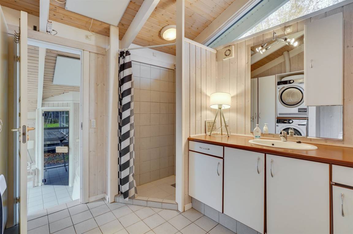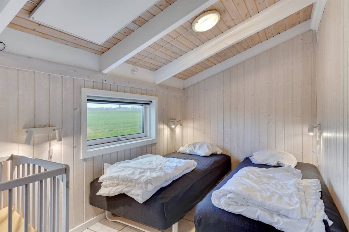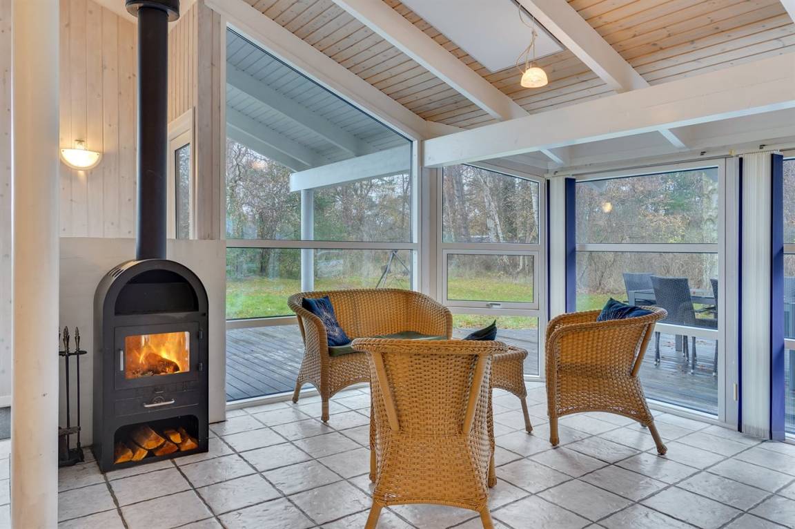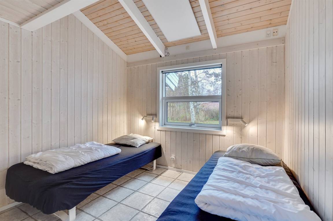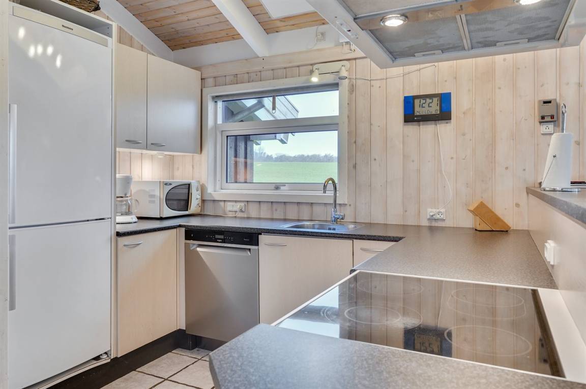 Dieses besonders schöne Ferienhaus liegt in einem ruhigen und naturschönen Gebiet – nicht weit von einem Strand mit einem neuen Badesteg entfernt. Vom Haus und von der Terrasse haben Sie eine herrliche Aussicht auf die offenen Felder und ab und zu ist es möglich Damwild und Hasen zu sehen. Das Gebiet ist bei Sportanglern sehr beliebt. Übrigens: Eine Leiter führt in das offene Obergeschoss hinauf, das mit 2 Matratzen eingerichtet ist.