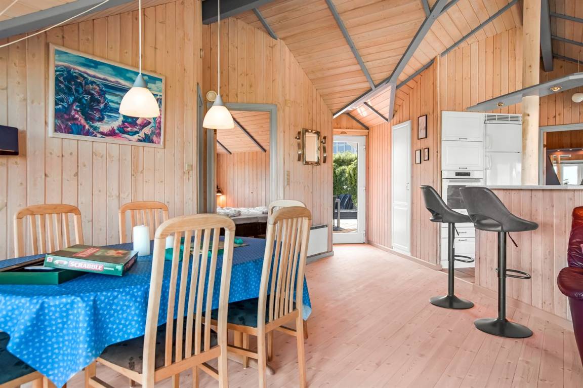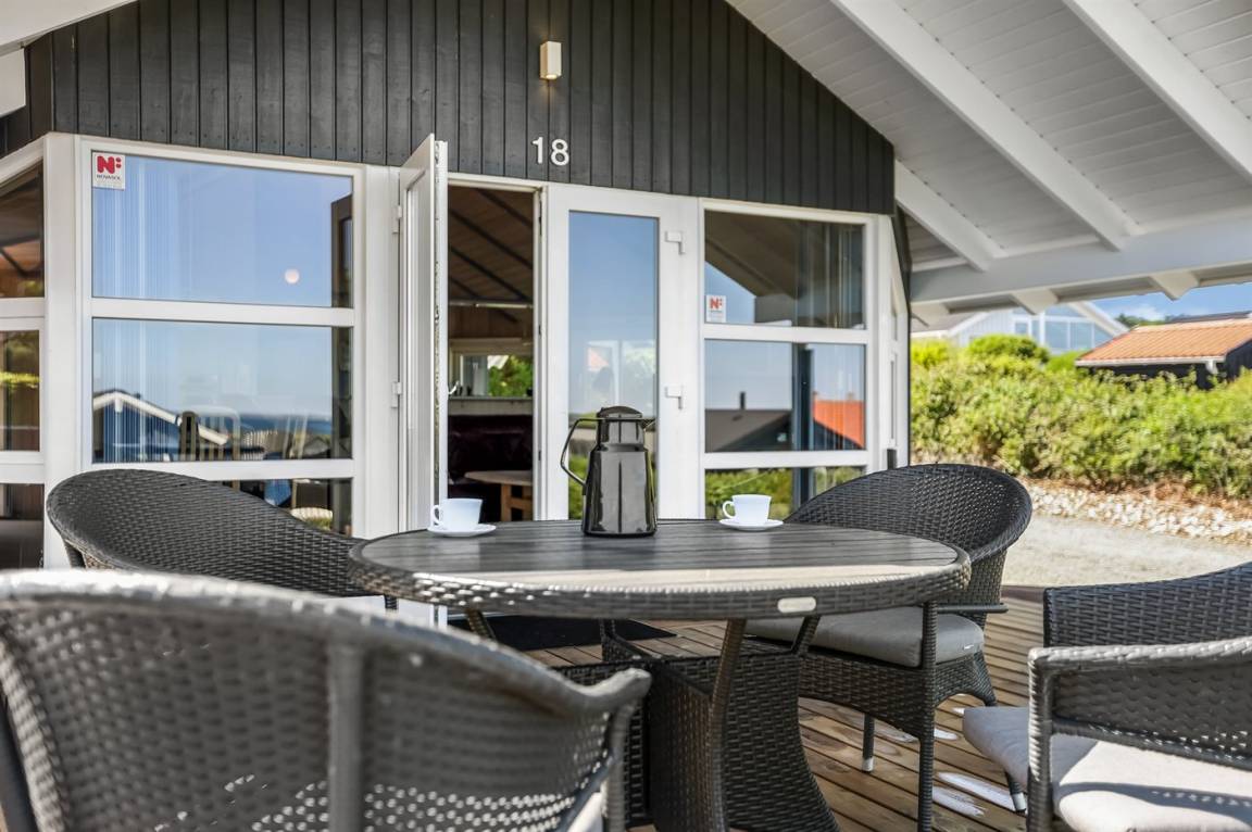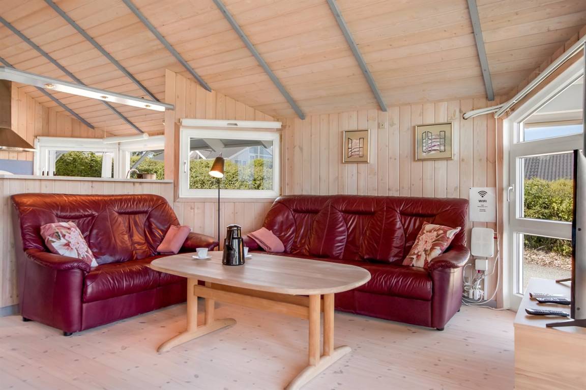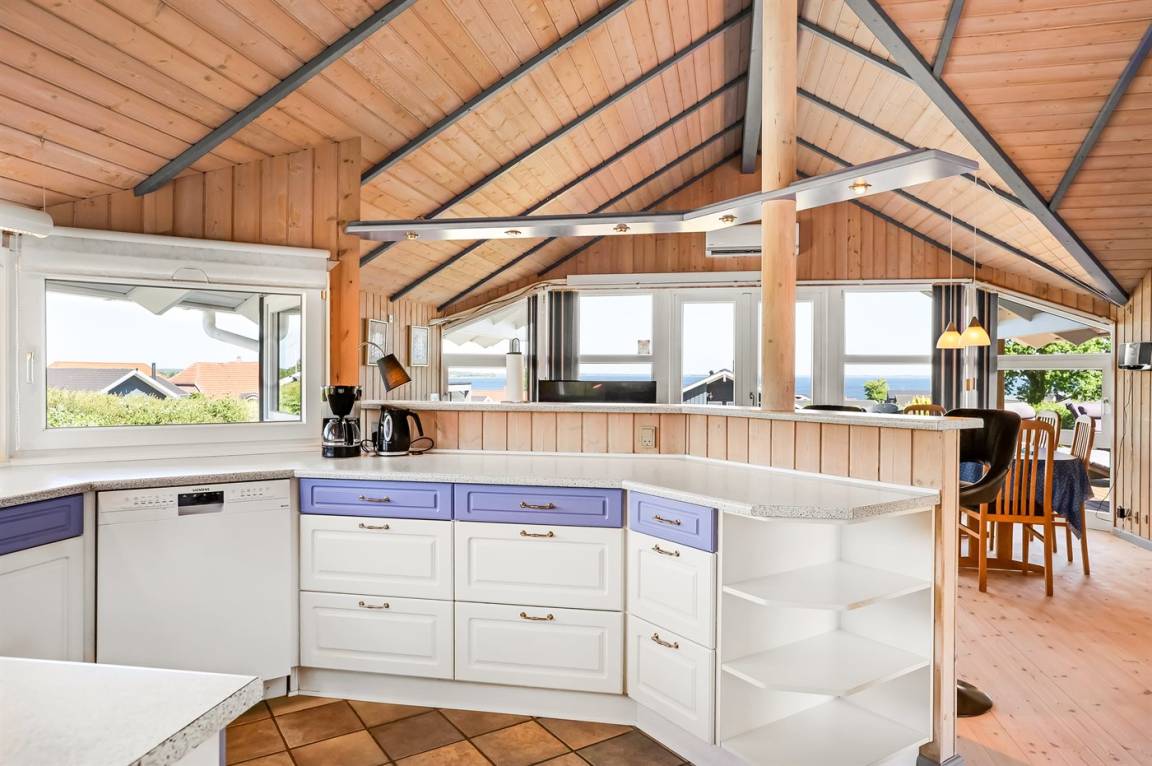 Mit diesem Ferienhaus genießt ihr einen herrlichen Blick auf das Wasser, den ihr sowohl vom Wohnzimmer als auch von der großen Terrasse aus erleben könnt. Das gemütliche Wohnzimmer lädt zum Entspannen ein, und von hier aus könnt ihr die wechselnden Stimmungen des Meeres beobachten – ganz gleich, ob ihr am Esstisch sitzt, es euch auf dem Sofa bequem macht oder das Abendessen in der offenen Küche zubereitet.