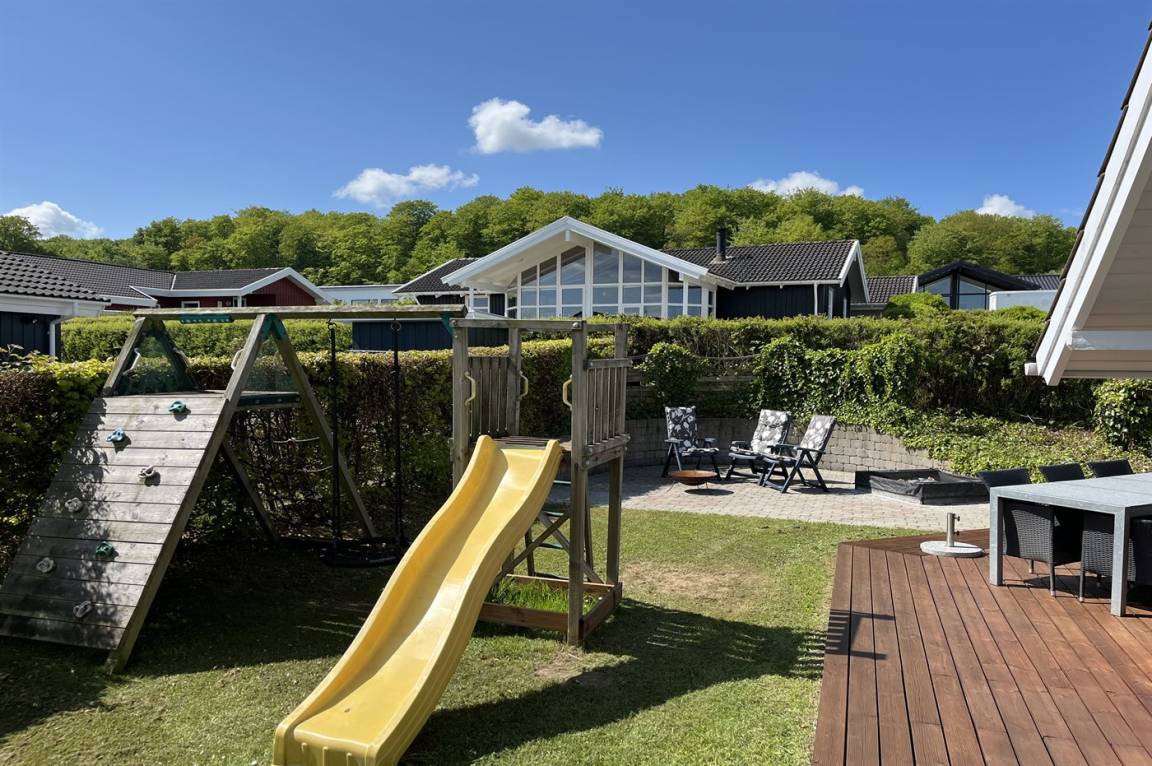 Das Leben im Freien rund um das Haus ist etwas ganz Besonderes. Die großen Terrassenflächen bieten die Möglichkeit, den ganzen Tag über die Sonne zu genießen, und für Kinder gibt es eine Rutsche, eine Schaukel und einen Sandkasten zum freien Spielen. Der gepflegte Rasen bietet zudem viel Platz für Ballspiele und andere Aktivitäten.