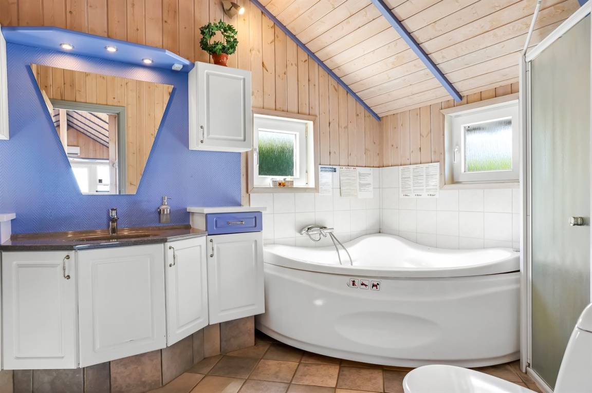Das Haus verfügt über drei großzügige Schlafzimmer, und das Badezimmer ist mit einem schönen Wellnessbereich ausgestattet, in dem sowohl ein Whirlpool als auch eine Sauna bereitstehen, um euch nach einem erlebnisreichen Tag zu verwöhnen.