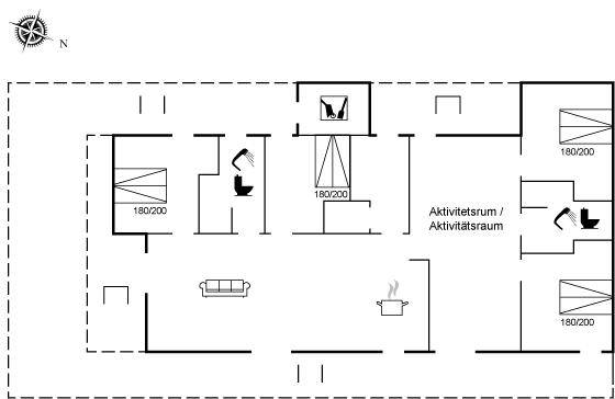 SchlafverhältnisseDie Schlafplätze verteilen sich auf 4 Schlafräume. 8 Schlafplätze in Doppelbetten. Ferner steht ein Kinderbett zur Verfügung.