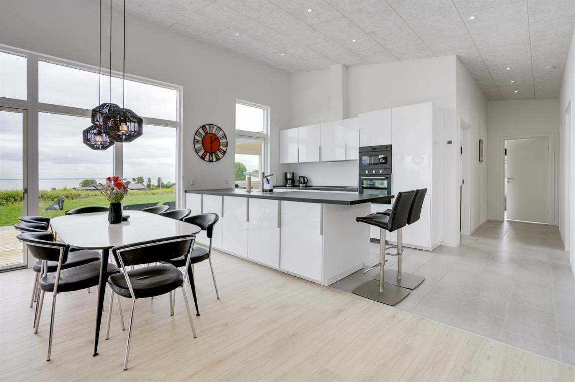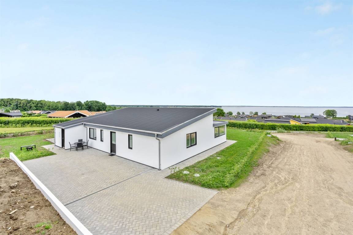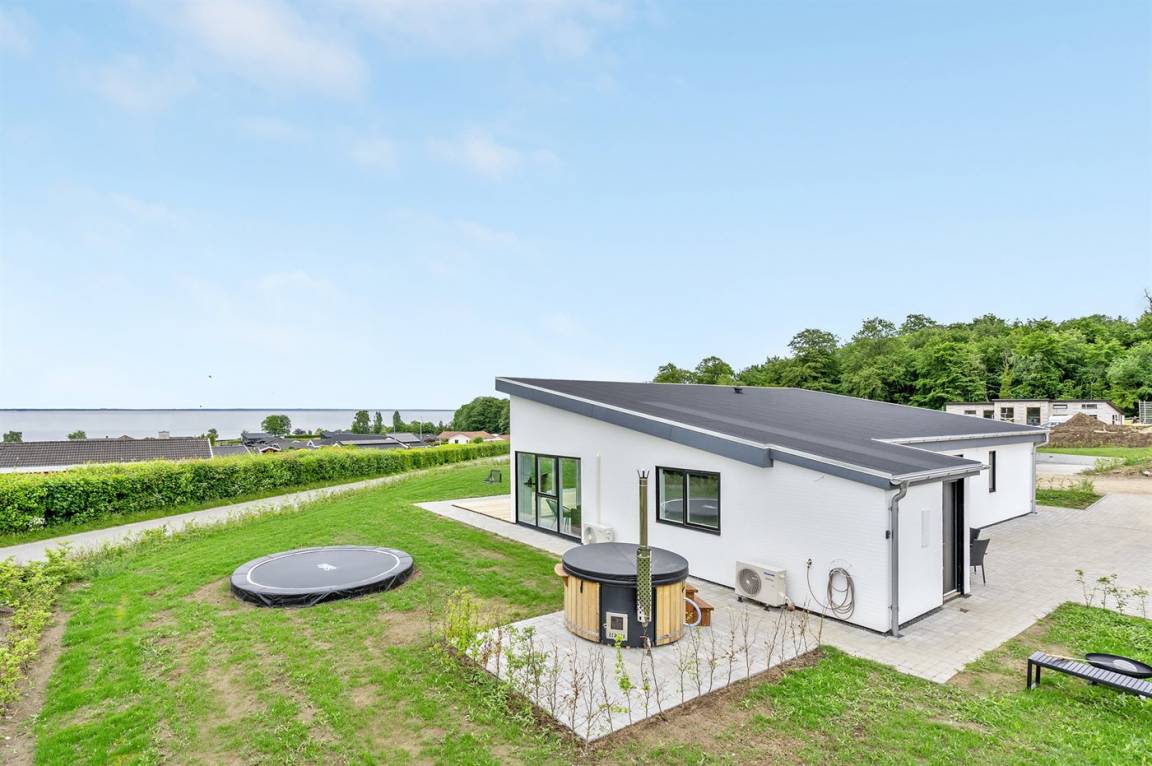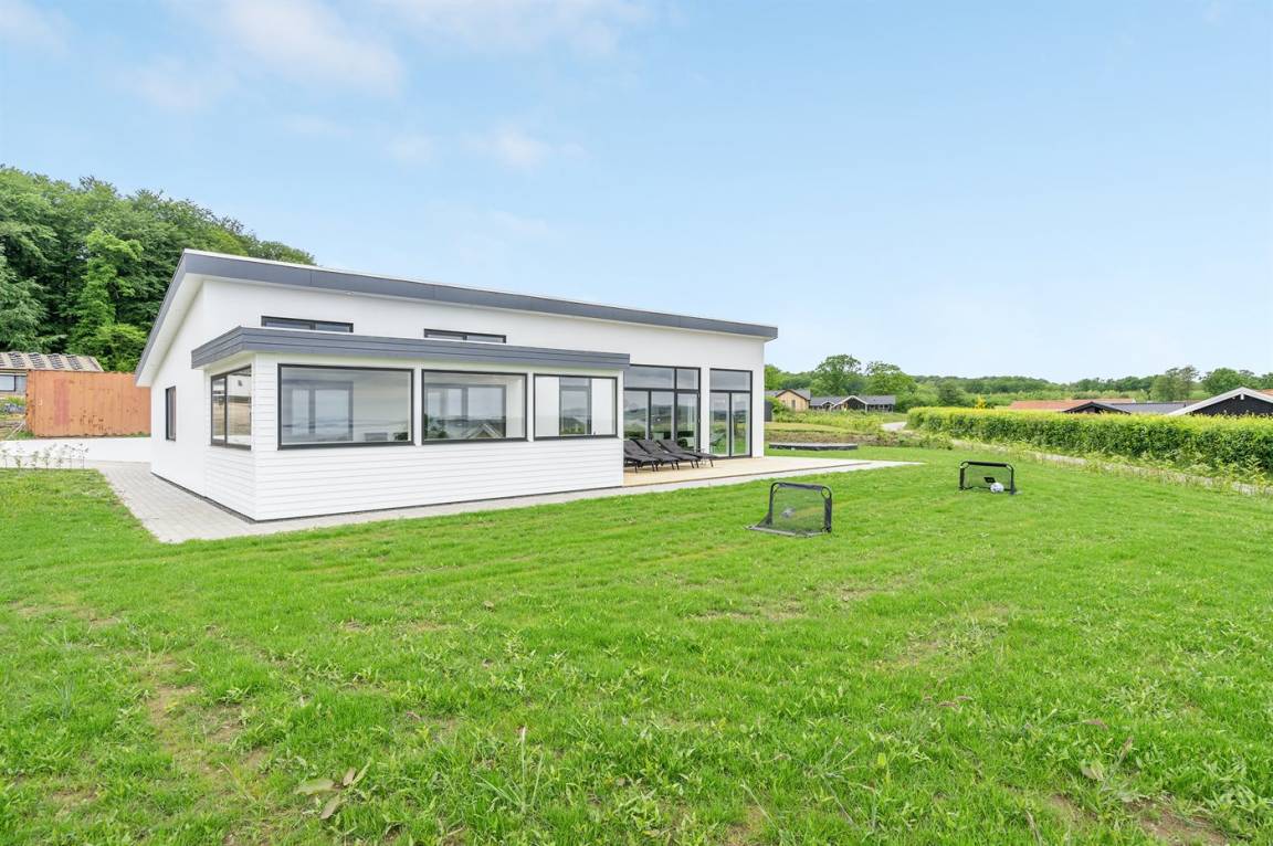 Ein 2022 erbautes, neues Haus in Grønninghoved mit Panoramablick aufs Wasser.