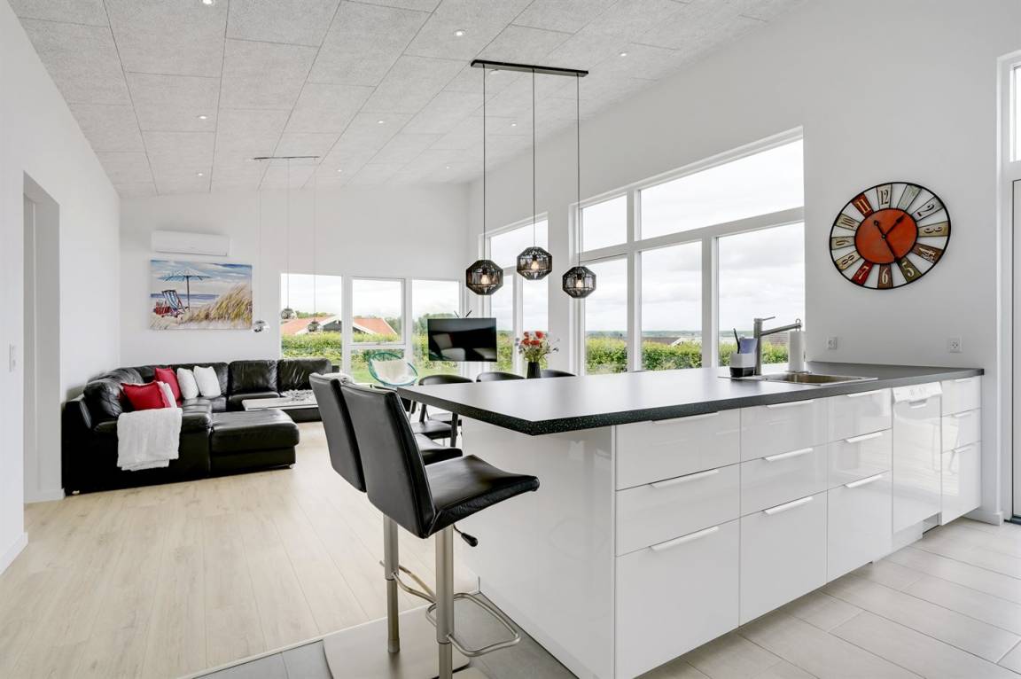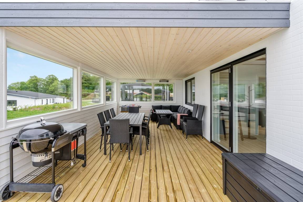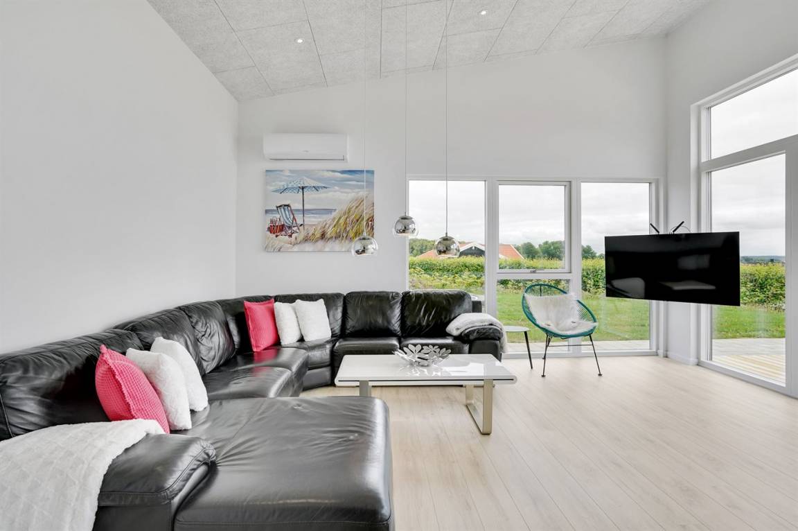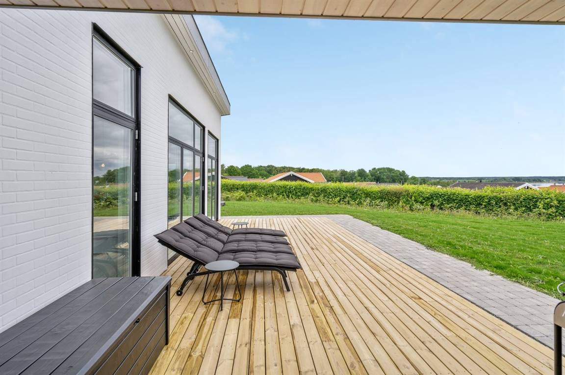 Ein 2022 erbautes, neues Haus in Grønninghoved mit Panoramablick aufs Wasser.