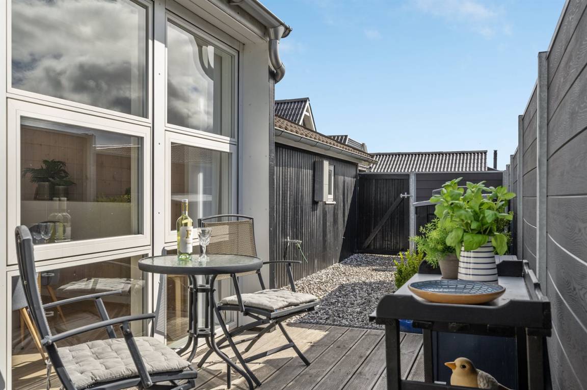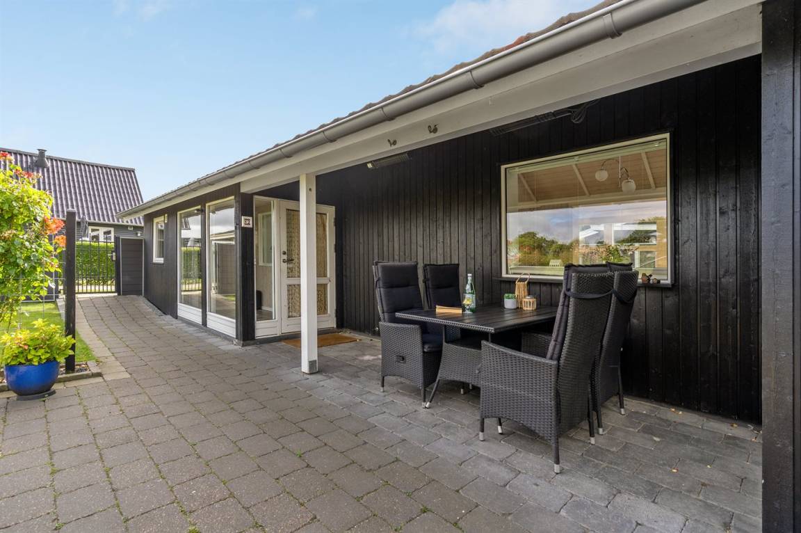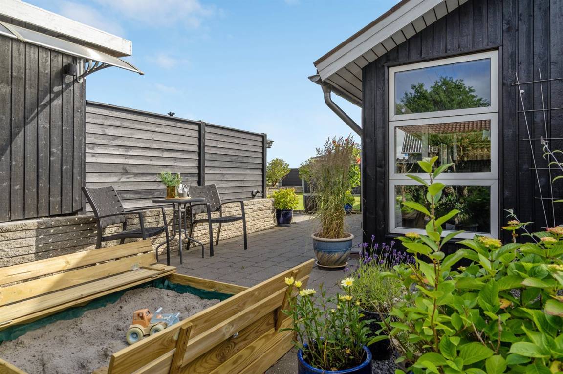 DraußenDie Ferienunterkunft liegt auf einem 321 m² großen Gartengrundstück. Das Grundstück ist eingezäunt. Die Entfernung zum Meer beträgt 75 m. Die nächste Einkaufsmöglichkeit liegt 4000 m entfernt. In einem Abstand von 12000 m gibt es einen Golfplatz. Es steht ein 12 m² offenes Terrassenareal zur Verfügung und 40 m² geschlossene Terrasse. Schaukel. Sandkasten. Es steht ein Grill zur Verfügung. Es steht ein Carport zur Verfügung. Parkplatz auf dem Grundstück.