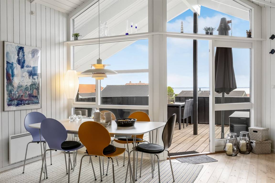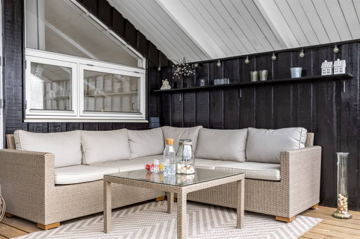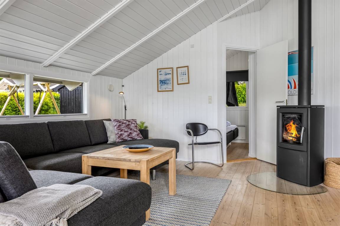 Mit diesem Ferienhaus bekommst du einen herrlichen Blick auf das Wasser, den du sowohl vom Wohnzimmer als auch von der großen Terrasse genießen kannst. Das gemütliche Wohnzimmer lädt zum Entspannen ein, und von hier aus kannst du die wechselnden Stimmungen des Meeres beobachten – egal, ob du am Esstisch sitzt oder es dir auf dem Sofa bequem machst.