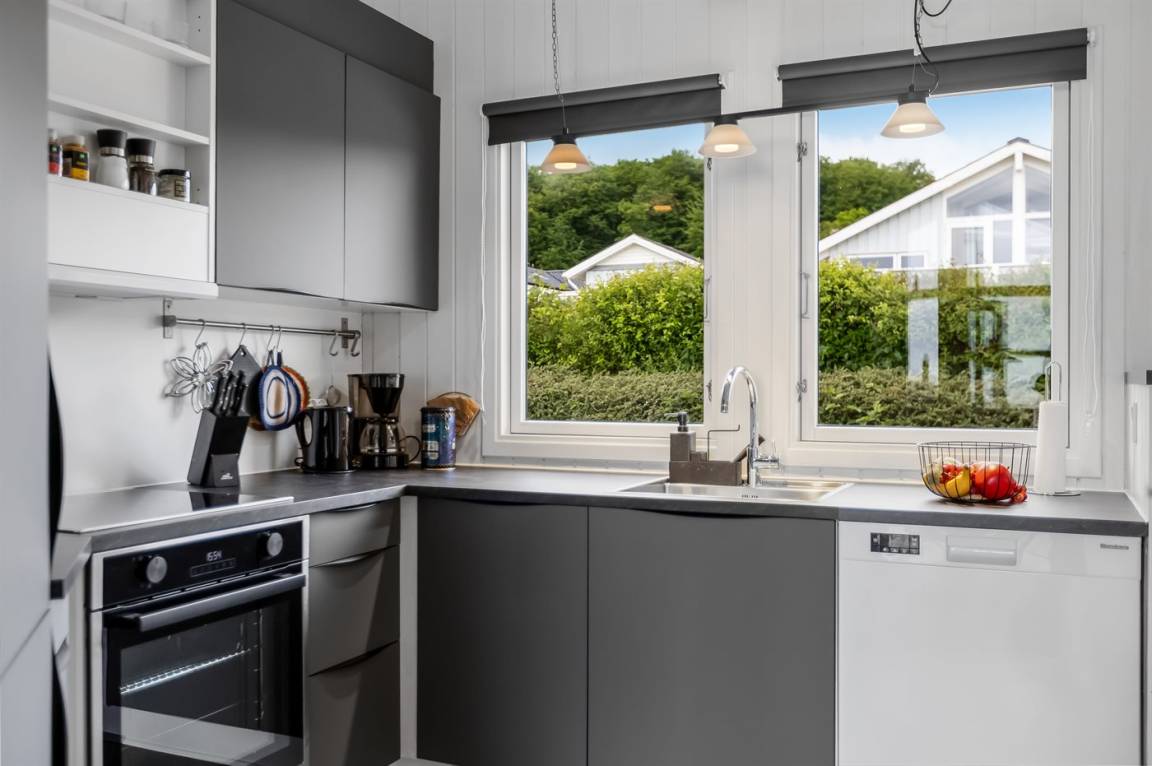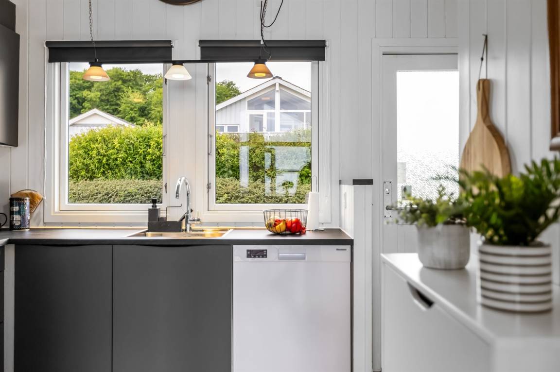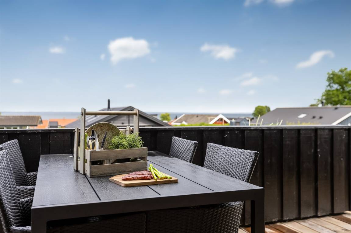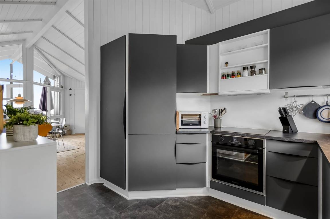 Mit diesem Ferienhaus bekommst du einen herrlichen Blick auf das Wasser, den du sowohl vom Wohnzimmer als auch von der großen Terrasse genießen kannst. Das gemütliche Wohnzimmer lädt zum Entspannen ein, und von hier aus kannst du die wechselnden Stimmungen des Meeres beobachten – egal, ob du am Esstisch sitzt oder es dir auf dem Sofa bequem machst.