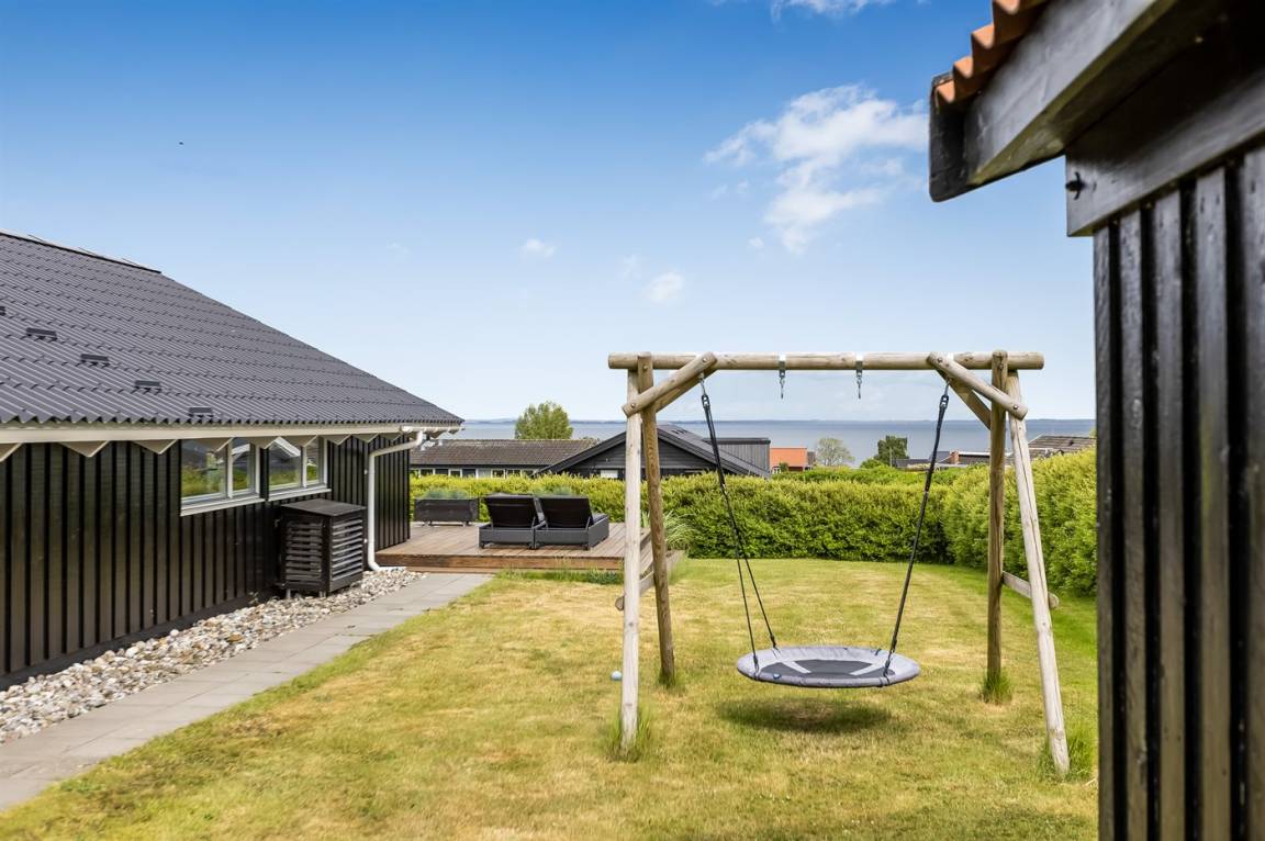 Die großen Terrassenflächen bieten dir die Möglichkeit, den ganzen Tag die Sonne zu genießen oder zum Beispiel unter der überdachten Terrasse in den bequemen Loungemöbeln ein Buch zu lesen. Die Kinder können frei spielen – mit Schaukel und Sandkasten. Der Rasen bietet zudem viel Platz für Ballspiele und andere Aktivitäten.