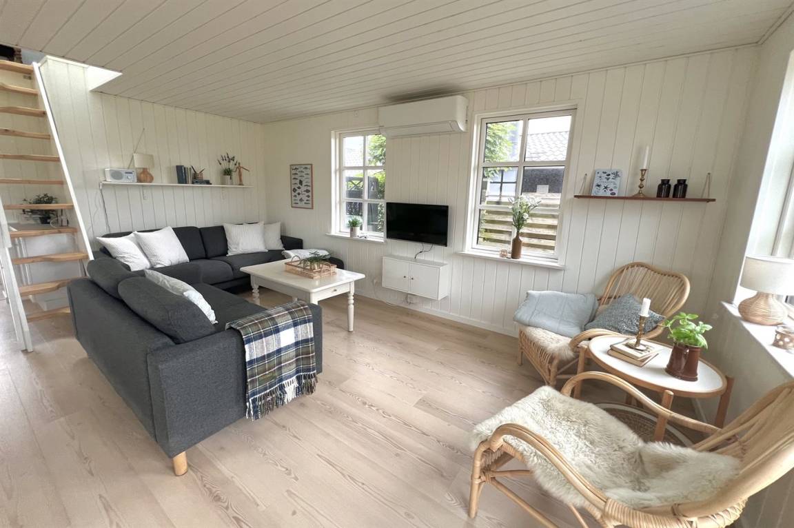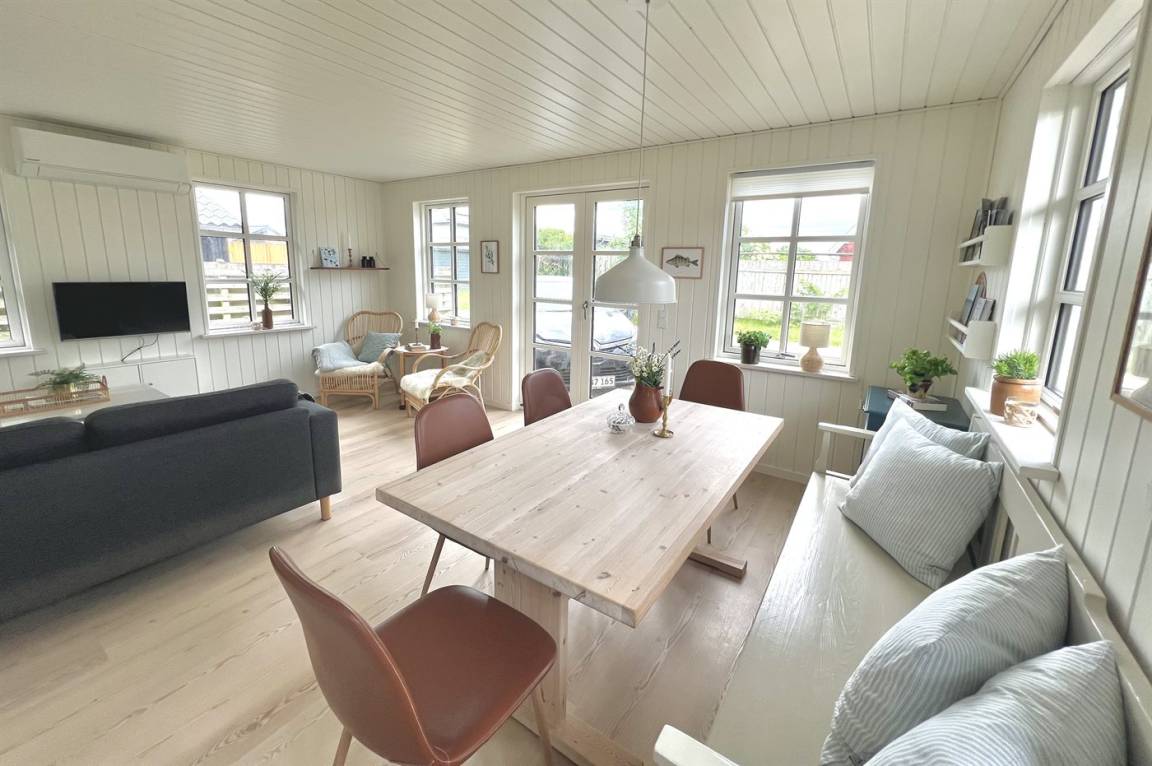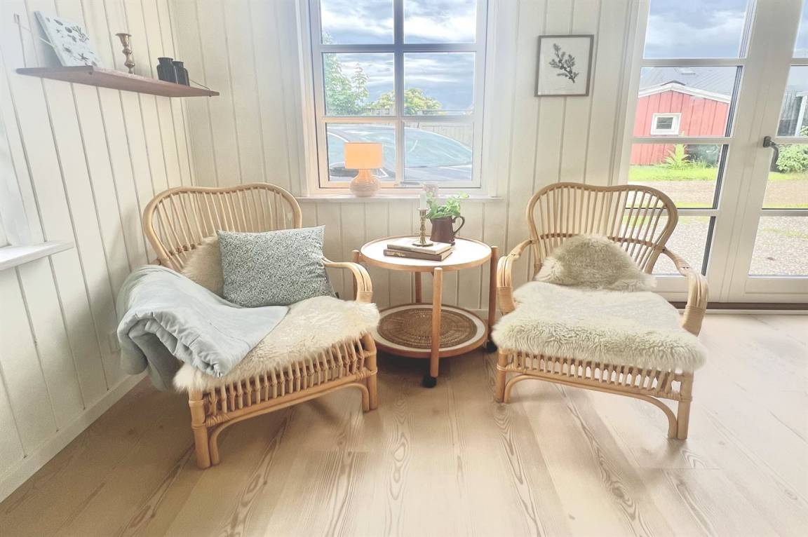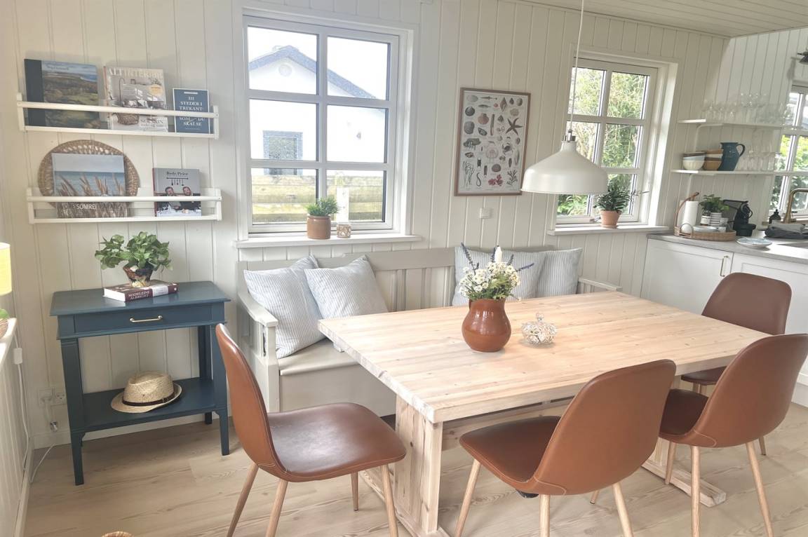 „The vacation at the holiday home: Sommerhuset blev rengjort på under 1 time inden vi ankom - dette ved vi da vi ankom lidt tidligere og ringede for at høre om vi måtte låse os ind. Vi kørte ud og handlede og da vi kom retur havde der været rengøring. Men det var løbet MEGET hurtigt over. Der lå fx et gammelt brugt plaster i brusekabinen. Generelt lidt nusset over det hele - trænger nok snart til en hovedrengøring. I forventer at kunderne skal bruge 1-2 timer på rengøring, hvis man selv gør det. Så må kunderne også forvente det samme af jer! Skraldestativet var fyldt da vi ankom og der stod i info-bogen, at den ville blive tømt hver mandag. Vi fik desværre ikke tømt i den uge, vi var der. Og måtte samle affald i en sort sæk og stille i et udeskur. Info-bogen trænger til en opdatering vedr priser for benyttelse af badeland, på campingpladsen ved siden af. Men ellers et dejligt og meget hyggeligt sommerhus.“