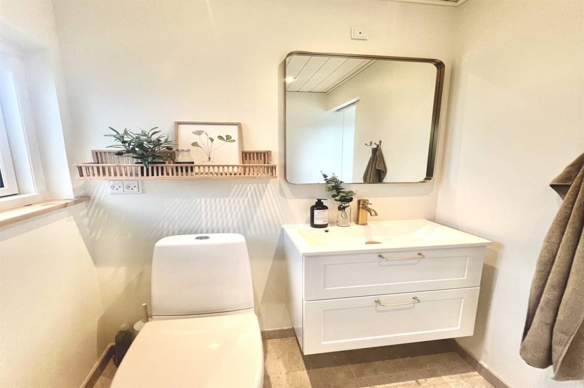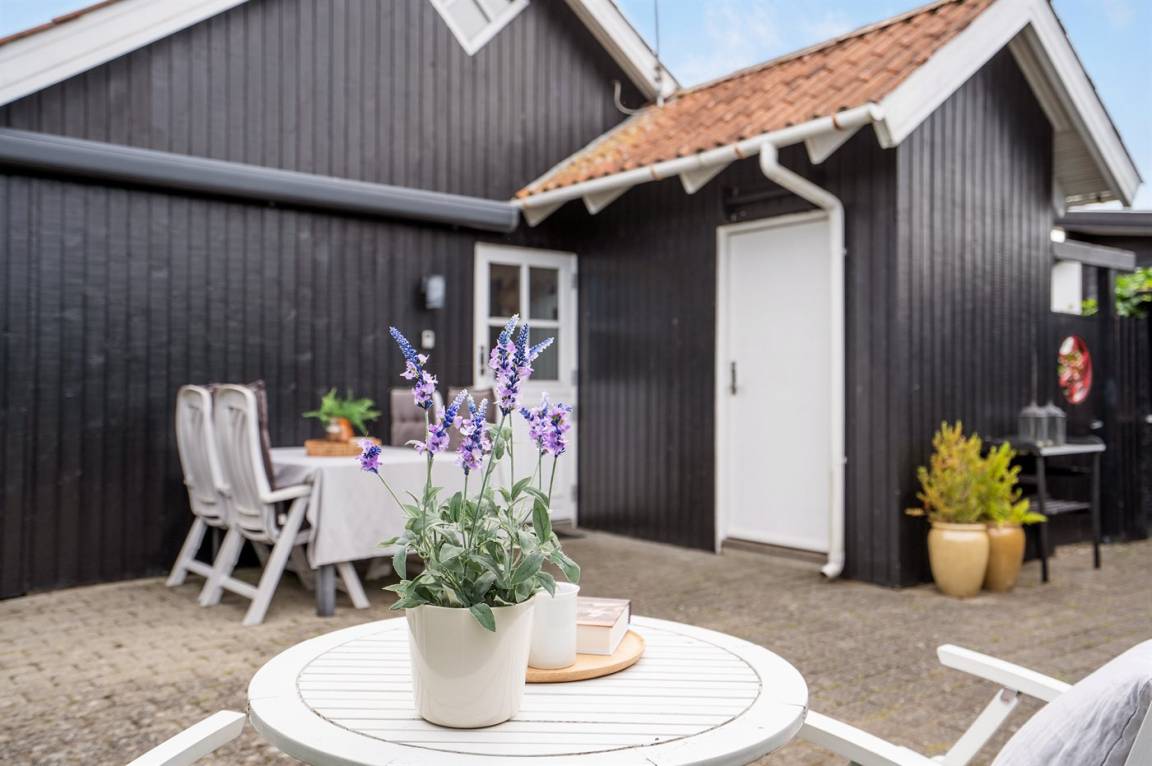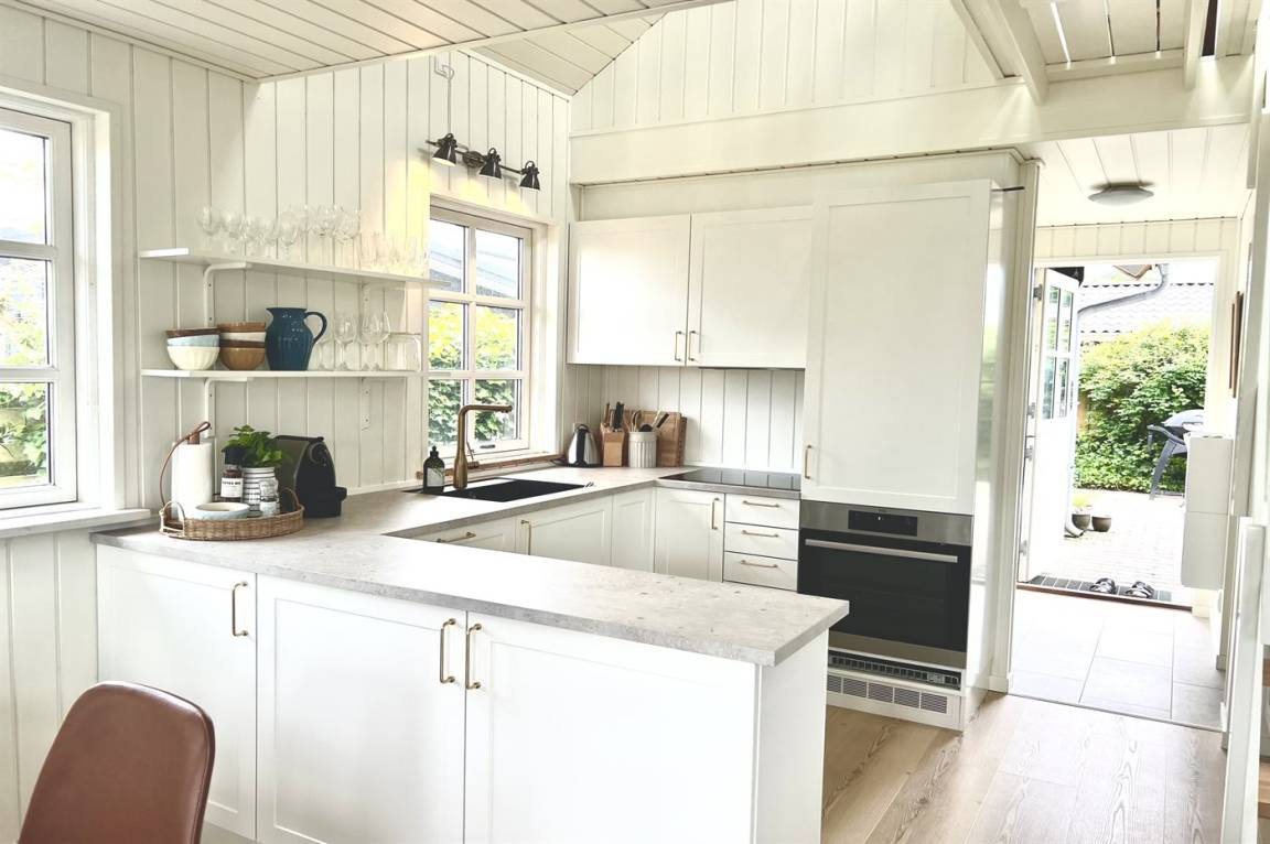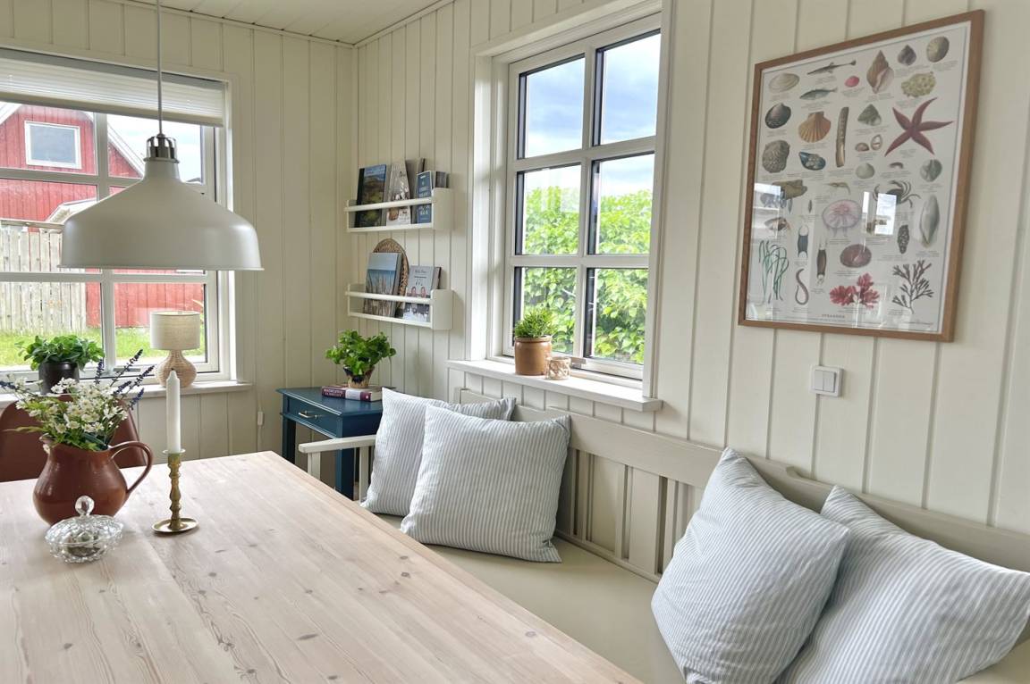 „The vacation at the holiday home: Sommerhuset blev rengjort på under 1 time inden vi ankom - dette ved vi da vi ankom lidt tidligere og ringede for at høre om vi måtte låse os ind. Vi kørte ud og handlede og da vi kom retur havde der været rengøring. Men det var løbet MEGET hurtigt over. Der lå fx et gammelt brugt plaster i brusekabinen. Generelt lidt nusset over det hele - trænger nok snart til en hovedrengøring. I forventer at kunderne skal bruge 1-2 timer på rengøring, hvis man selv gør det. Så må kunderne også forvente det samme af jer! Skraldestativet var fyldt da vi ankom og der stod i info-bogen, at den ville blive tømt hver mandag. Vi fik desværre ikke tømt i den uge, vi var der. Og måtte samle affald i en sort sæk og stille i et udeskur. Info-bogen trænger til en opdatering vedr priser for benyttelse af badeland, på campingpladsen ved siden af. Men ellers et dejligt og meget hyggeligt sommerhus.“