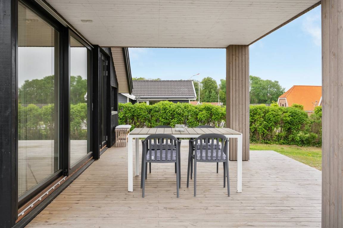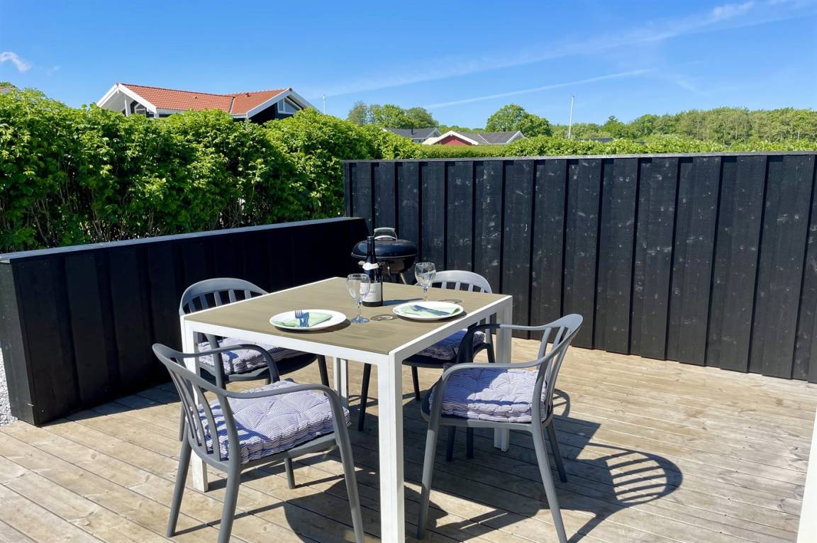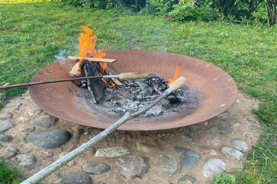 Draußen auf der Terrasse gibt es zwei Esstische sowie einen Kugelgrill, Liegestühle und Loungestühle. Auf dem Grundstück gibt es zudem eine Feuerschale, an der man an langen Sommerabenden gemütlich bei einem Feuer zusammen sitzen kann.