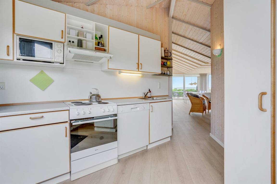 PANORAMABLICK! Tolles Ferienhaus aus Holz mit Whirlpool und Sauna, das 2021 umfassend umgebaut und renoviert wurde. Das Haus liegt auf einem Gartengrundstück in nur 300 m Entfernung von einem sehr kinderfreundlichen Sandstrand. Das Haus ist mit einem großen Badezimmer mit Duschkabine, Whirlpool und Sauna ausgestattet. Das Haus hat 3 Schlafzimmer: Ein großes Schlafzimmer mit Meerblick, Zugang zur Terrasse und Doppelbett, ein Schlafzimmer mit Doppelbett und Waldblick und ein Schlafzimmer mit Meerblick, Oberlicht und zwei Einzelbetten. Außerdem gibt es im Haus eine große Küche/Wohnküche/Wohnzimmer mit Panoramablick auf den Kleinen Belt. Die Küche ist mit einem Kühl-/Gefrierschrank, einem Umluftofen und einer Mikrowelle ausgestattet.