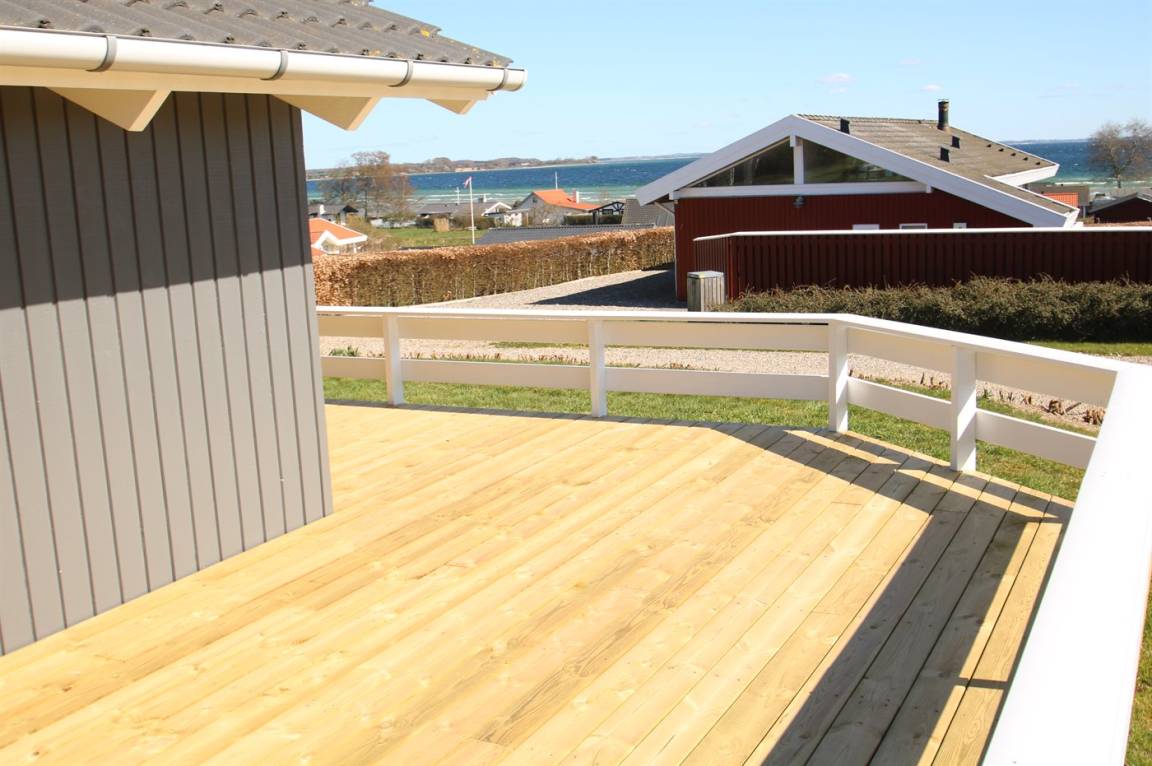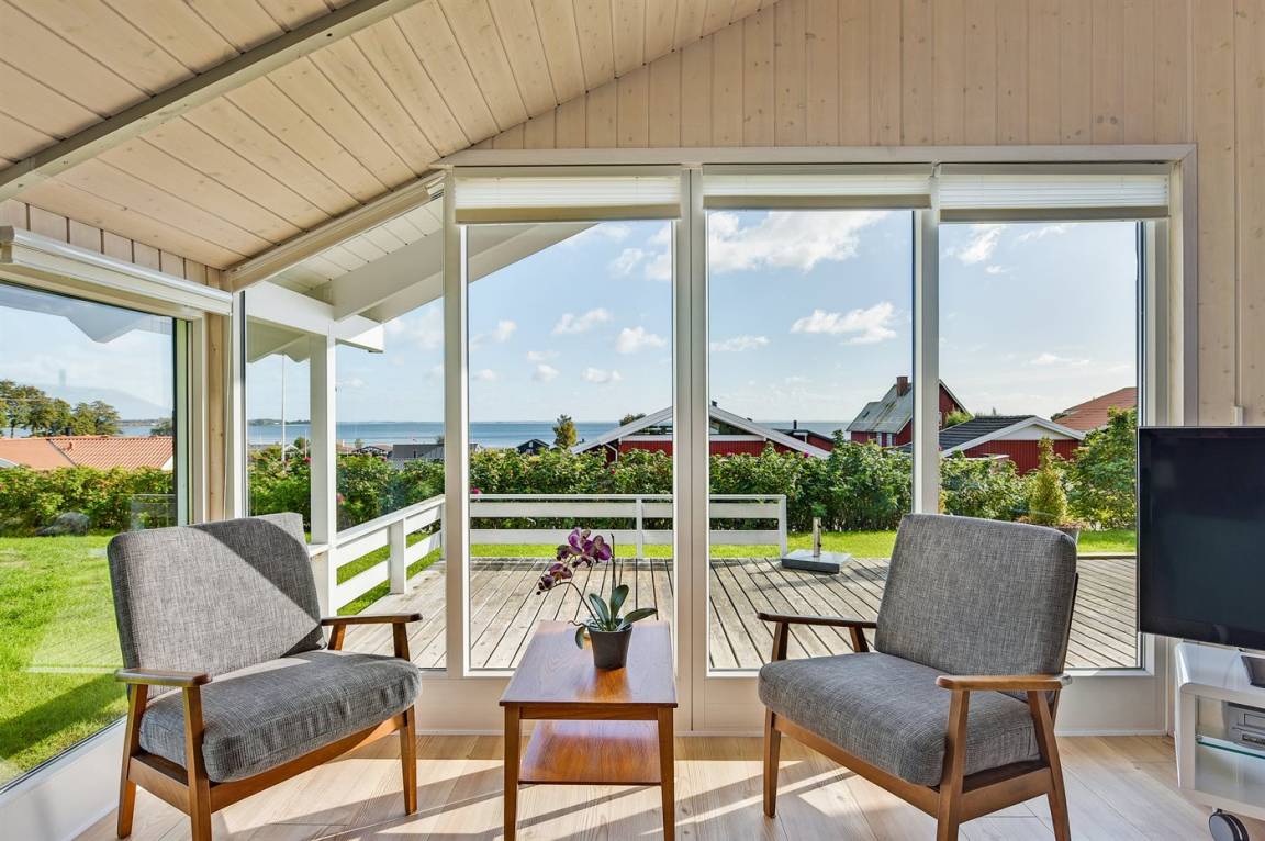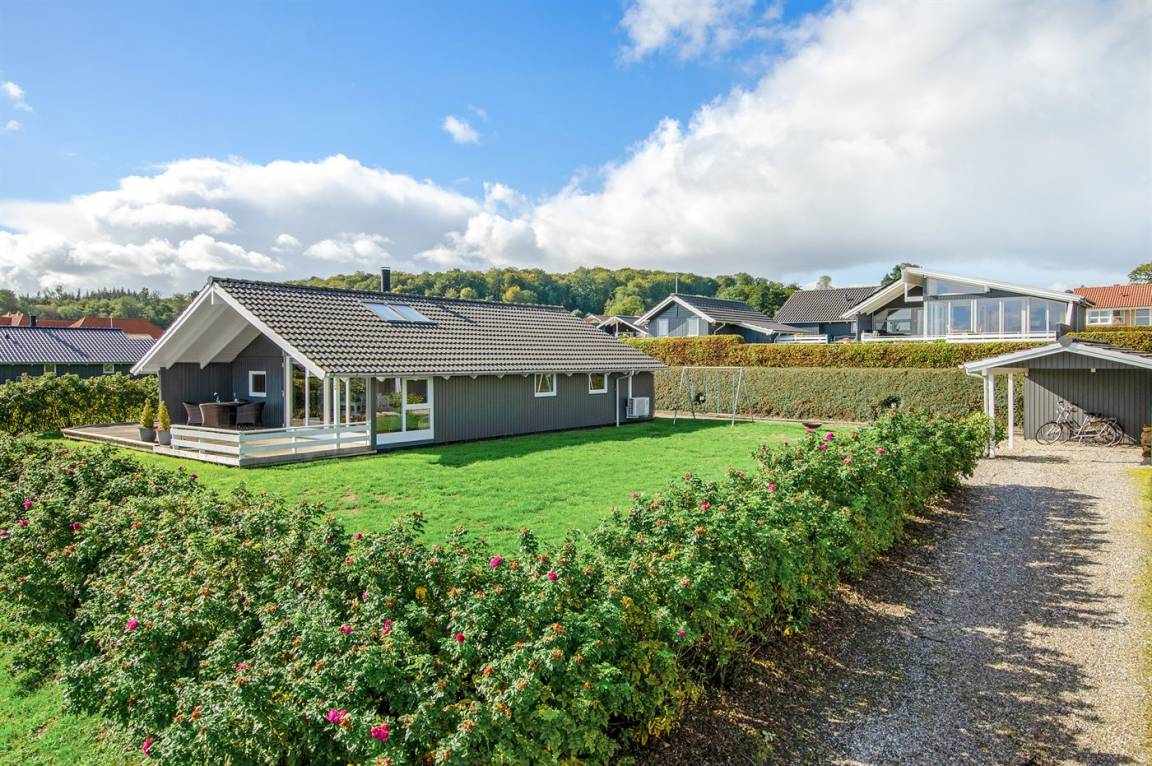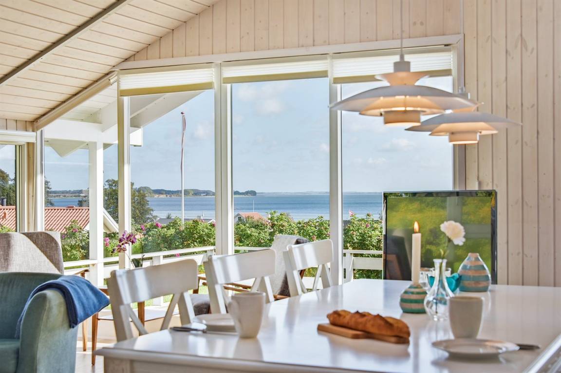 PANORAMA-MEERESBLICK! Wunderschönes Ferienhaus aus Holz mit Whirlpool und Sauna, 2000 gebaut und 2013 letztens mit u. a. neuer Küche renoviert. Das Haus ist auf einem schönen Gartengrundstück gelegen, nur 150 m von kinderfreundlichem Sandstrand entfernt. Die Wände und Decken sind mit rustikalem Kiefernholz verkleidet. Schönes Badezimmer mit 2 Pers. Whirlpool, beheiztem Fliesenboden, Duschnische, Waschmaschine und Wäschetrockner sowie direktem Zutritt zur Sauna des Hauses. Gut ausgestattete Küche u. a. mit Warmluftofen, Mikrowelle und Geschirrspüler. Das hübsch möblierte Wohnzimmer mit Meeresblick enthält Kaminofen, Stereoanlage mit CD-Spieler, Video, DVD-Spieler und Kabel-TV. Ferner kostenlose, kabellose Internetverbindung vorhanden (Computer ist mitzubringen). Kinderhochstuhl und Kinderbett für die Kinder. Offenes und überdachtes Terrassenareal mit Gartenmöbeln und Liegestühlen. Schaukel und Carport vorh. Ein wirklich herrliches Haus mit einer attraktiven Lage im südlichen Teil von Dänemark. Das gemütliche und naturschöne Feriengebiet Binderup Strand mit Hügeln und Tälern liegt am Kleinen Belt. Sowohl vom Haus als auch vom Grundstück haben Sie Panoramaaussicht über das Wasser bis nach Fünen. Ein Pfad führt zum guten und sehr kinderfreundlichen Sandstrand mit Badesteg. Auf den nahe liegenden Campingplätzen gibt es Minigolf, Außenschwimmbad sowie Kiosk. 100 m zu Spielplatz. Das Gebiet lädt zum Wandern ein, z. B. führt ein Pfad durch den Wald zu dem höchsten Punkt Südjütlands, Skamlingsbanken, mit einer phantastischen Aussicht und einem Restaurant. Gute Einkaufsmöglichkeiten in der Großstadt Kolding, die auch ein reiches Kulturleben und viele Aktivitätsmöglichkeiten anbietet. Die kleinere Stadt Christiansfeldt ist für seine Lebkuchen berühmt.